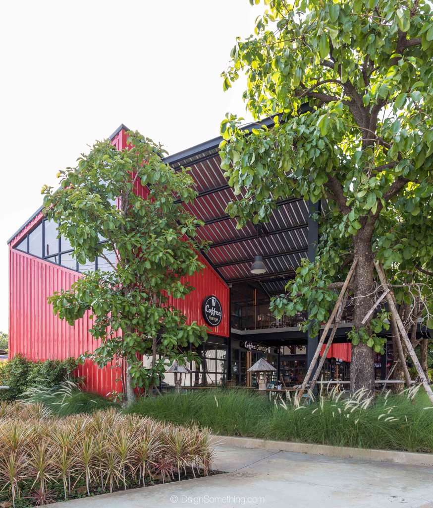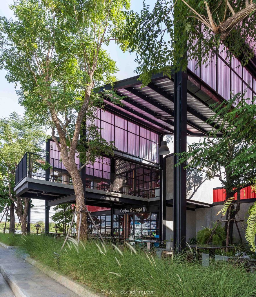 ความเรียบเท่ของโครงสร้างเหล็กเข้ากันได้ดีกับความร่มรื่นของสวนและต้นไม้รอบๆโครงการ