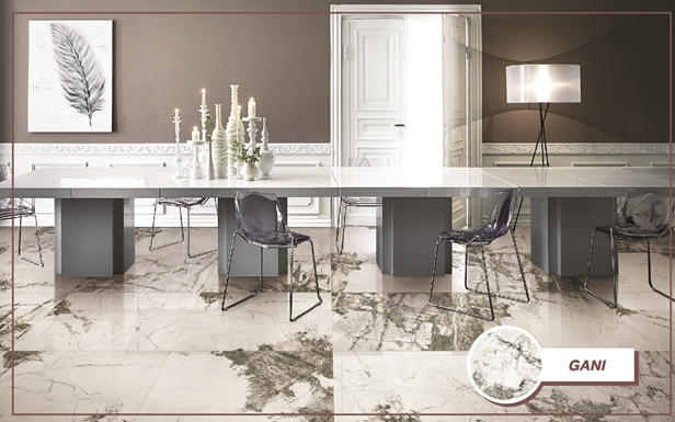 สำหรับลุคพรีเมียมไฮโซ เราเลือกกระเบื้อง Gani มาแนะนำซึ่งเป็นกระเบื้องเกลซโพลิซผิวมันเงา 70% จุดเด่นคือตัวกระเบื้องจะเห็นลวดลายชัดเจนเหมือนหินอ่อนธรรมชาติและไม่ดูมันเงาจนเกินไปทำให้กระเบื้อง รุ่นนี้ให้อารมณ์ทั้งสวยและดิบไปในตัว อย่างในภาพตัวอย่างคงจะเห็นแล้วว่าแค่มองไปที่พื้นห้องก็ดูแพงไฮโซ ได้โดยไม่ต้องโฟกัสไปที่เฟอร์นิเจอร์เลยทีเดียว!