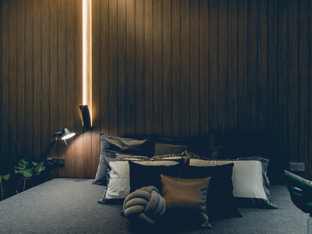 ฉะนั้นการออกแบบก็เริ่มต้นตรงที่ผังภายในของตัวบ้าน ด้วยคอนเซ็ปต์ Create Interest Point of Space หรือการสร้างจุดสนใจในทุกพื้นที่ ด้วยความเชื่อที่ว่า ทุกพื้นที่ต่างก็มีจุดเด่นของตัวเอง แต่ในขณะเดียวกันการใช้งานก็เป็นเรื่องจำเป็นด้วย เพราะต้องเข้ามือเจ้าของบ้านให้ใช้งานได้อย่างถนัด ความโดดเด่นจึงอยู่ที่ตรงที่งานดีไซน์ที่ทำให้ผนังพื้นธรรมดากลายเป็นห้องที่ไม่ธรรมดา อย่างมุมเปียโนที่เนรมิตให้เหมือนเป็นเวทีคอนเสิร์ต ด้วยการเล่นกับมุมมองด้านลึก อย่างการยกพื้นไม้ขึ้นมา 1 สเต็ป และการดึงความสูงของบันได กลายเป็นโถงเปียโน สร้างอารมณ์ร่วมทั้งกับผู้เล่นและผู้ฟัง