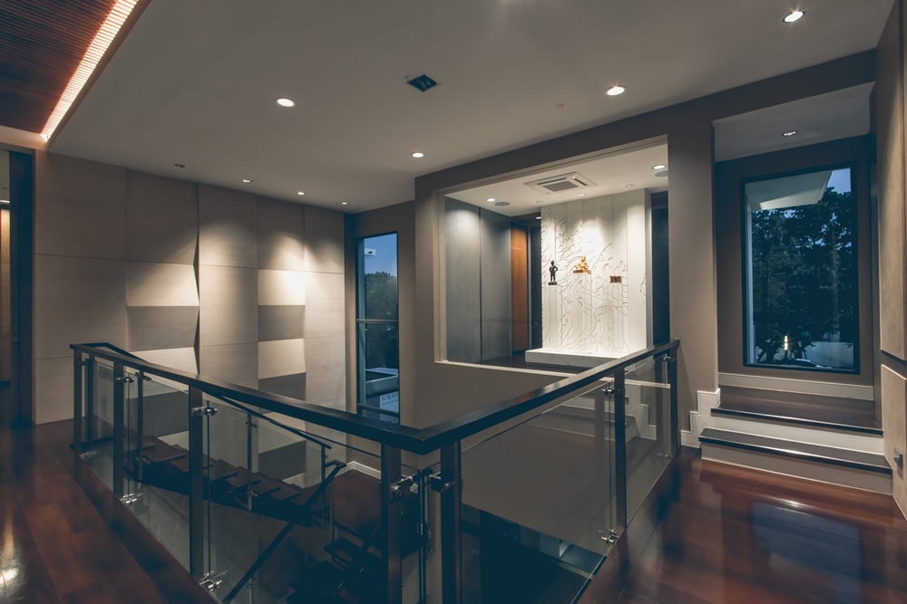 ส่วนพื้นที่สุดท้าย คือห้องพระ เป็นพื้นที่ทางจิตใจ เล่นสนุกด้วยการสร้างคอนเซ็ปต์ปาฎิหาริย์ขึ้นมาสร้างความยิ่งใหญ่ให้กับห้อง โดยการเล่นกับแสง ทั้งจากแสงธรรมชาติผ่านทางบานเลื่อนลูกเล่นลายไทย และแสงที่ผ่านอะคริลิกใสเป็นแท่นวางพระที่สร้างมิติให้เหมือนพระพุทธรูปลอยได้