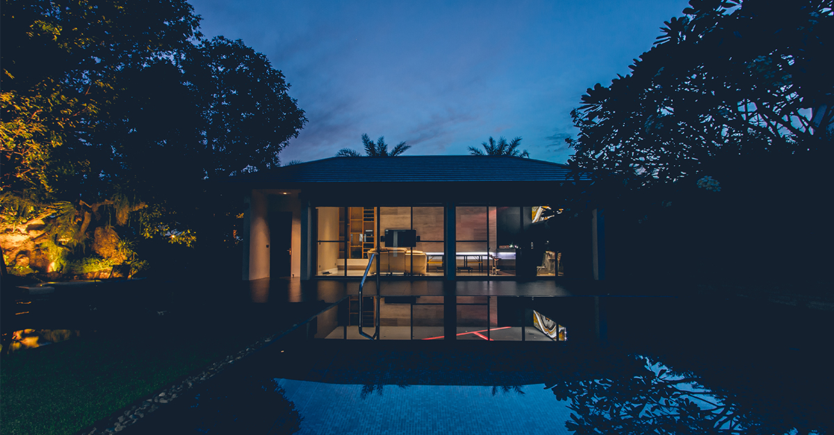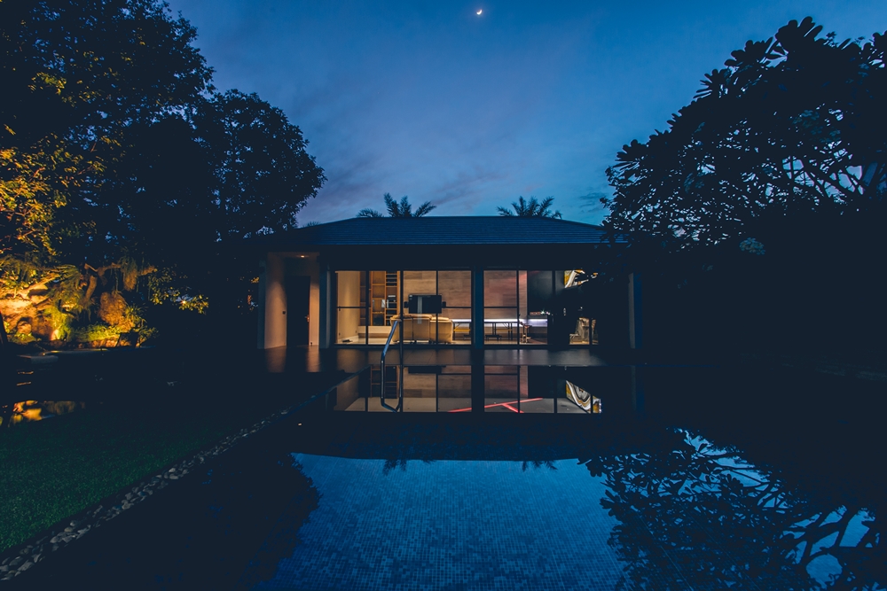 เพราะเจ้าของบ้านเป็นคนชอบสังสรรค์ จึงสร้างสรรค์เรือนเล็กข้างสระว่ายน้ำเพื่อเป็นพื้นที่สำหรับแฮงก์เอ๊าต์ริมสระโดยเฉพาะแรงบันดาลใจจากแมงกะพรุน ด้วยการซ่อนไฟ LED เปลี่ยนสีได้ไว้กับวัสดุโปร่งแสงอย่างหิน เพิ่มบรรยากาศคึกคักให้กับวงปาร์ตี้