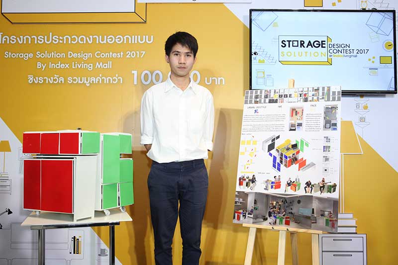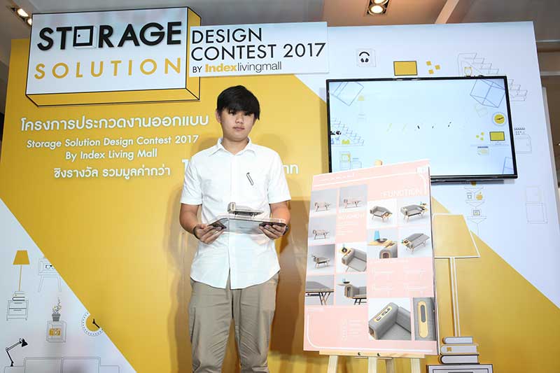 ประกาศผลอย่างเป็นทางการเป็นที่เรียบร้อยแล้ว พร้อมต้อนรับว่าที่นักออกแบบรุ่นใหม่สู่วงการดีไซน์ สำหรับโครงการประกวดค้นหาดีไซน์เนอร์ออกแบบเฟอร์นิเจอร์ ที่จัดต่อเนื่องเป็นปีที่ 3 กับโปรเจ็กต์ “สตอเลจ โซลูชั่น ดีไซน์ คอนเทสต์ 2017 บาย อินเด็กซ์ ลิฟวิ่งมอลล์” ซึ่ง อินเด็กซ์ ลิฟวิ่งมอลล์ ซึ่งจัดขึ้นเพื่อสนับสนุนให้นิสิต นักศึกษา คณะสถาปัตยกรรมศาสตร์ กลุ่มวิชาชีพออกแบบระดับมหาวิทยาลัย รวมถึงบุคคลทั่วไป ได้พัฒนาทักษะ แสดงศักยภาพ รวมทั้งนำเสนอความคิดสร้างสรรค์ด้านการออกแบบเฟอร์นิเจอร์ เพื่อตอบสนองรูปแบบการใช้ชีวิตของผู้บริโภคในปัจจุบัน ซึ่งในปีนี้มีผู้สนใจร่วมส่งผลงานเข้าประกวดนับ 100 ผลงาน โดยได้จัดงานประกาศผลรางวัล ณ อินเด็กซ์ ลิฟวิ่งมอลล์ สาขาเกษตร- นวมินทร์ ซึ่งผู้ชนะการประกวดครั้งนี้จะต้องออกแบบผลงานให้ตรงตามโจทย์ ประเภท Storage (การจัดเก็บ) และตอบโจทย์ครบทุกไลฟ์สไตล์การใช้ชีวิตแบบสังคมเมือง พร้อมให้ความสะดวกสบายในพื้นที่จำกัด สามารถเก็บของและใช้งานได้อย่างกลมกลืน โดยเลือกออกแบบได้ตั้งแต่เตียง, โซฟา, เดย์เบด, เก้าอี้, โต๊ะกลาง, ชั้นวางของ, ชั้นเก็บของ ซึ่งชิ้นงานจะต้องอยู่บนหลักการที่สามารถใช้งานได้จริง และผู้ชนะการประกวดจะได้รับเงินรางวัลรวมกว่า 100,000 บาท