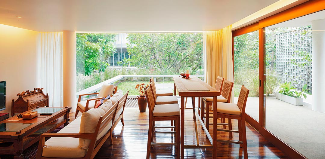 เรายังสังเกตว่าของตกแต่งและเฟอร์นิเจอร์ในบ้านนี้ส่วนใหญ่จะมีกลิ่นอายของสไตล์โอเรียนทัลมาตัดสลับกับความเรียบง่ายของงานสถาปัตยกรรมแบบโมเดิร์น คุณจุ๋งจิ๋งเล่าว่าด้วยหน้าที่การงานของ คุณแอนเดอร์ส เพอร์นควิสท์ เจ้าของบ้านฝ่ายชาย ทำให้ต้องเดินทางอยู่บ่อยครั้ง อีกทั้งยังชื่นชอบการท่องเที่ยว จึงมักเลือกซื้อข้าวของสวยๆ ติดมือกลับมาด้วย ทั้งจากประเทศอิตาลี ไต้หวัน และอินเดีย โดยคุณจุ๋งจิ๋งจะเป็นผู้เลือกจัดวางเองทั้งหมด ทำให้ทุกพื้นที่ในบ้านดูมีชีวิตชีวา