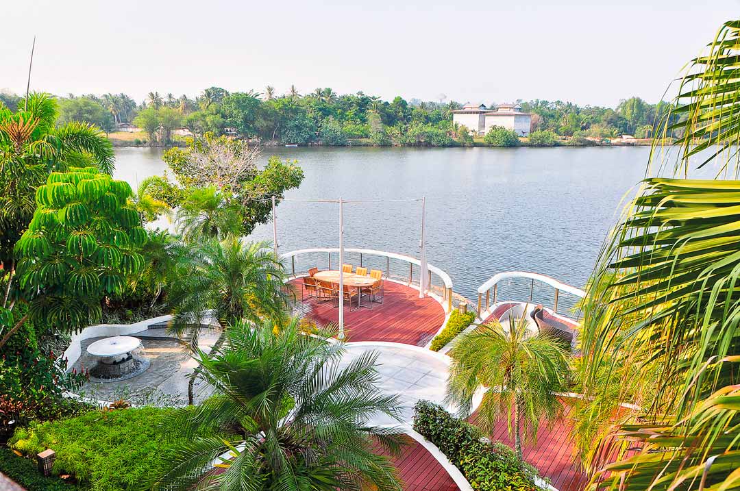 ภายในสวนมีการออกแบบให้แต่ละมุมลื่นไหลต่อเนื่องกัน จึงใช้งานได้สะดวก รวมทั้งยังมีการใช้ฮาร์ดสเคปเป็นองค์ประกอบที่เปลี่ยนภาพสวนไปอย่างสิ้นเชิง แก้ปัญหาให้สวนมีความงดงามในทุกฤดูแบบที่อยากให้เป็น ยามเย็นที่ดวงอาทิตย์คล้อยต่ำ มุมนี้จึงเป็นอีกมุมโปรดของครอบครัวชุติเชาวน์กุลสำหรับออกมานั่งหย่อนใจริมแม่น้ำบางนรา สายน้ำที่ไม่เคยหยุดนิ่งและเต็มไปด้วยความสวยงามทุกเมื่อเชื่อวัน