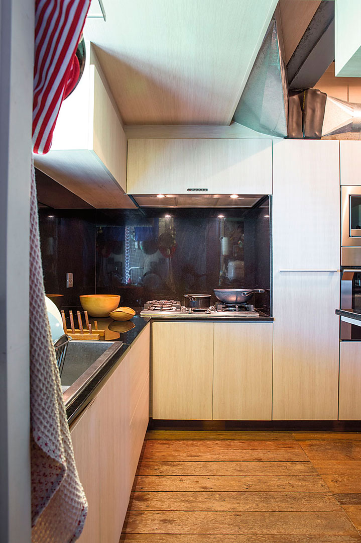 นอกจากการเลือกใช้วัสดุอย่างไม้ที่ช่วยเพิ่มความอบอุ่นและให้อารมณ์ของความเป็นบ้านแล้ว อีกสิ่งหนึ่งที่ช่วยลบภาพห้องแถวเดิมๆ ออกไปได้ก็คือ การเพิ่มช่องแสงเข้าไปในทุกส่วนของบ้าน เพื่อเปิดรับแสงธรรมชาติ ทำให้บ้านดูปลอดโปร่งมากขึ้น เมื่อรวมกับการออกแบบพื้นที่ใช้สอยได้อย่างคุ้มค่า ก็ทำให้บ้านขนาดกะทัดรัดหลังนี้เป็นบ้านที่น่าอยู่ เหมาะกับวิถีชีวิตคนเมืองจริงๆ