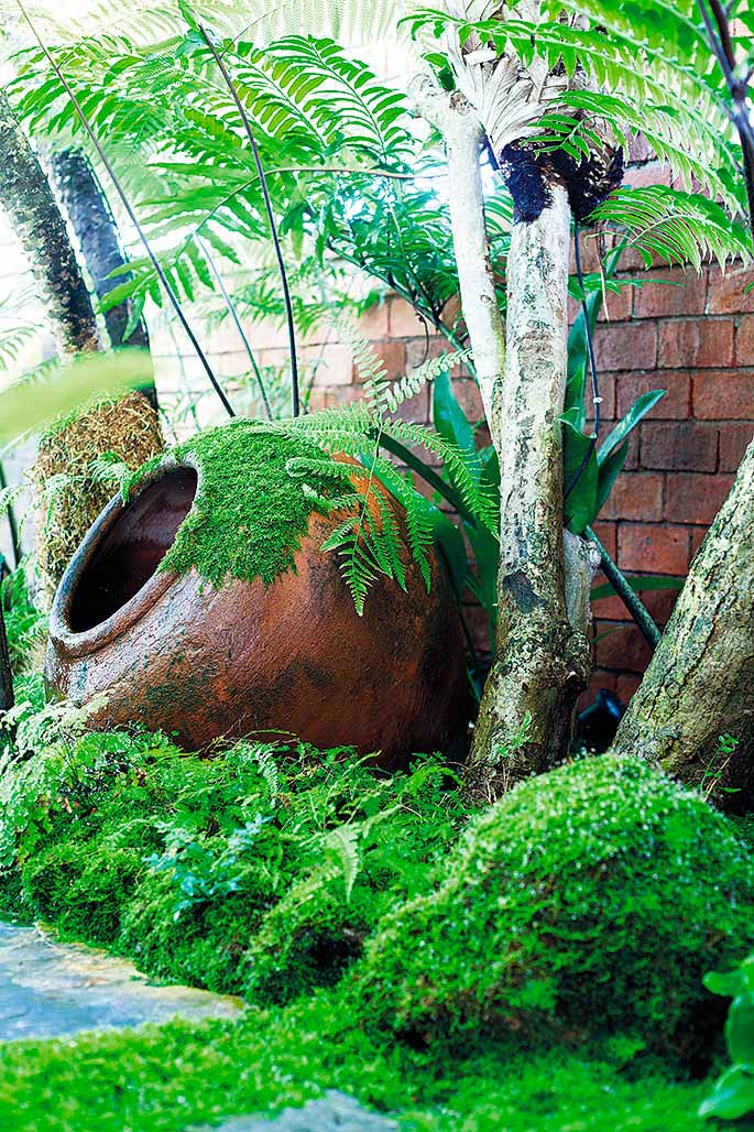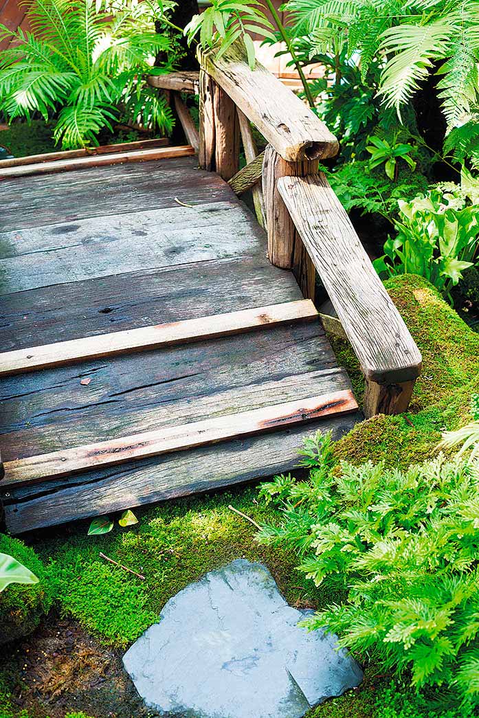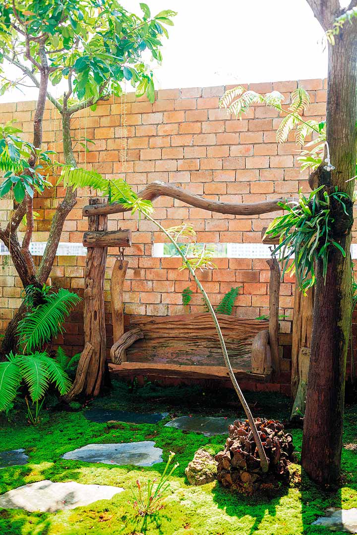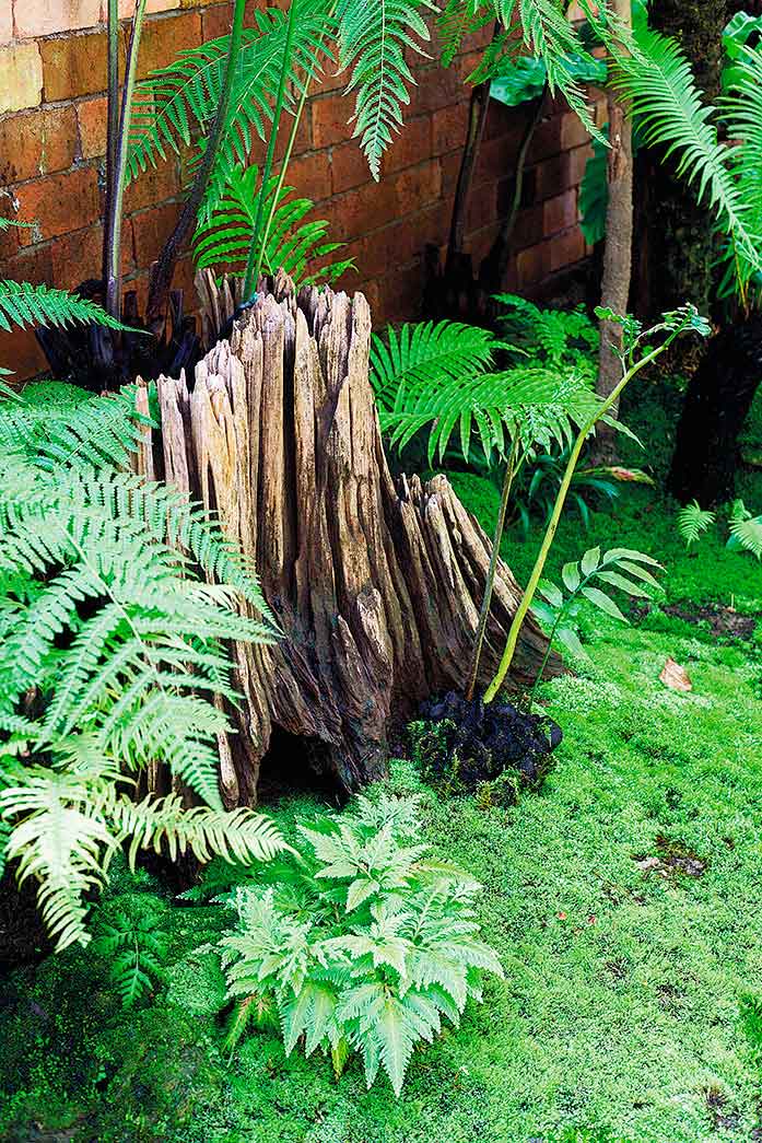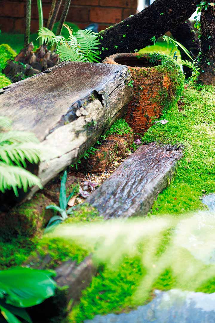 สำหรับพรรณไม้ที่ครอบครัวนี้ชื่นชอบเป็นพิเศษ ได้แก่ เฟินสายพันธุ์ต่างๆ อย่างทรีเฟิน เฟินกนกนารี เฟินชายผ้าสีดา เฟินก้านดำ เฟินข้าหลวง เฟินปีกนก ฯลฯ มาประกอบกับไม้ยืนต้นให้ร่มเงา เช่น มะม่วงของสวนเดิม หมาก จิกเศรษฐี จันทน์ผา สัตบรรณ สิบสองปันนา ฯลฯ และเลือกปลูกมอสส์คลุมดินแทนการปูหญ้า เพราะได้สัมผัสที่ละเอียดนุ่มนวลกว่า รวมถึงช่วยเก็บความชุ่มชื้นให้ผิวดิน ไม่เสียเวลาในการตัดแต่งอีกด้วย และยังสามารถปลูกในพื้นที่ร่มโดนแดดรำไรได้ดี