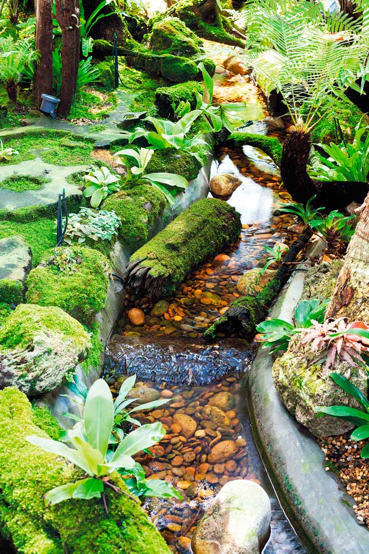 “พี่ชอบอยู่กับต้นไม้และเสียงน้ำ เมื่อนั่งเล่นอยู่ในบ้าน มองจากห้องนอนหรือทำอาหารอยู่ในครัวก็อยากเห็นวิวสวนสวยๆ เพราะมันเป็นความประทับใจครั้งหนึ่งพี่เคยไปนอนพักที่น้ำตกทีลอซู อำเภออุ้งผาง จังหวัดตาก ตอนนั้นเราสัมผัสได้ถึงความสุข ความสงบ ผ่อนคลาย รู้สึกว่าชอบฟังเสียงของสายน้ำ รวมถึงลักษณะของธรรมชาติบริเวณนั้น เลยตั้งใจกลับมาทำน้ำตกเล็กๆ ไว้ที่บ้านของเราเอง สวนจึงเป็นสิ่งสำคัญที่ครอบครัวของเราขาดไม่ได้เลยค่ะ” (ยิ้ม)