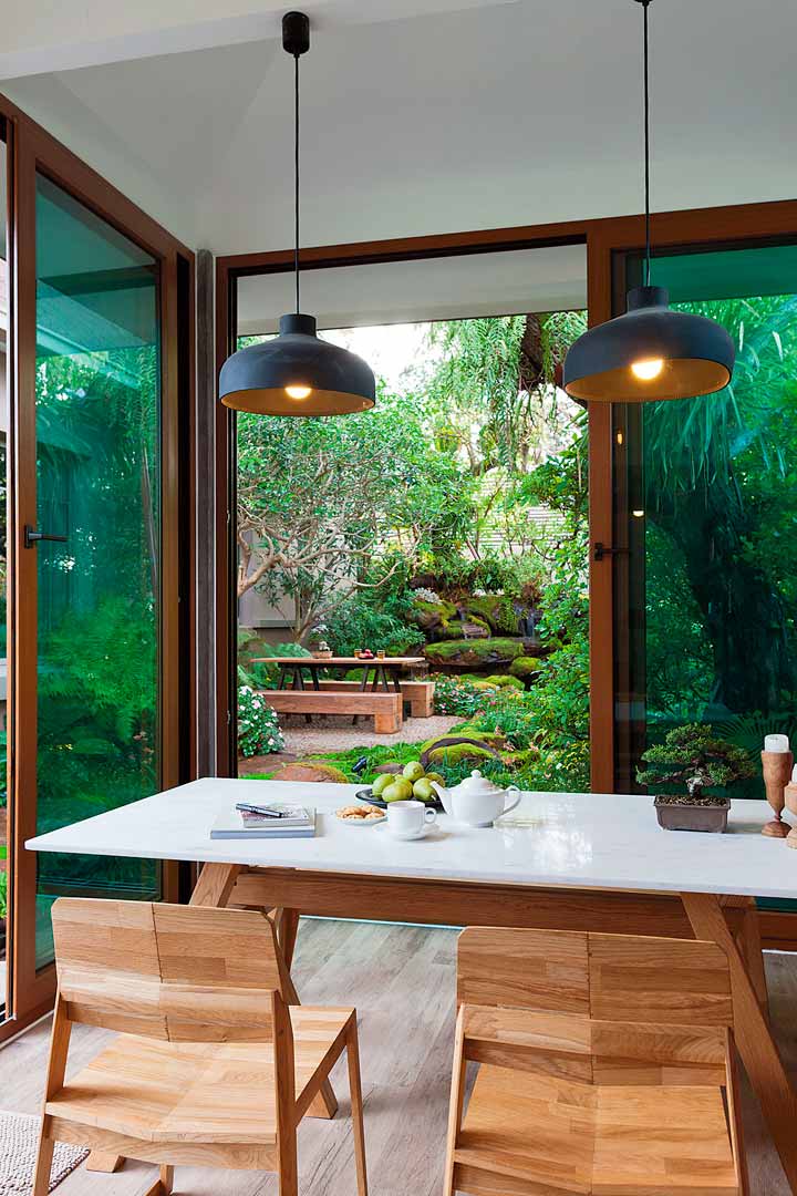 เมื่อสอบถามถึงแนวคิดการออกแบบและขั้นตอนการดำเนินการต่างๆ กับผู้ออกแบบจนกลายเป็นสวนสวยสมบูรณ์น่าใช้อย่างที่เห็น คุณวุฒิมีเทคนิคดีๆและเกร็ดความรู้ต่างๆ มาเล่าให้ฟังว่า “เริ่มแรกเลยก็เปลี่ยนสภาพสวนเดิมออกทั้งหมดครับ แล้ววางตำแหน่งส่วนต่างๆ ให้เหมาะสำหรับการใช้งาน โซนสวนด้านหน้าผมออกแบบในรูปแบบเรียบโปร่ง ดูสงบนิ่งแบบโมเดิร์นเซน ค่อยๆ มาผสานกับความชุ่มชื้น ความร่มรื่นของสวนป่าทรอปิคัลที่อยู่ด้านหลัง เมื่อเข้ามาในสวนจึงสัมผัสได้ถึงความรู้สึกที่หลากหลาย ดูแตกต่างแต่กลมกล่อม และเป็นองค์ประกอบเดียวกัน