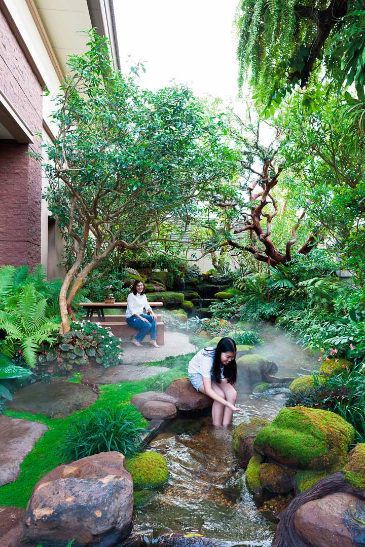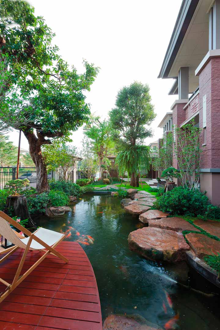 ท่ามกลาง สวนธรรมชาติ แสนผ่อนคลายด้วยสีเขียวของเหล่าพรรณไม้ แซมด้วยสีสันเล็กๆ ของไม้ดอกดูเพลินตา สัมผัสได้ถึงความชุ่มเย็นจากสายน้ำที่ส่งเสียงสร้างความชุ่มชื่นใจ