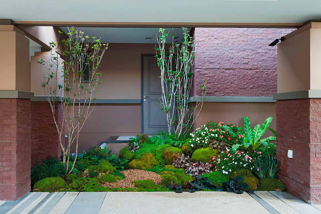 “จนตกลงมาซื้อบ้านในย่านพุทธมณฑลสาย 1 หลังนี้ มีพื้นที่รวมแล้วประมาณ 200 ตารางวา เดิมมีสวนของโครงการที่จัดไว้ให้แล้วครับ เป็นสวนเรียบๆ มีสนามหญ้า ไม้พุ่ม และลานพื้นหิน ดูแล้วรู้สึกไม่ค่อยร่มรื่นเท่าไหร่นัก ซึ่งตอนแรกภรรยาของผม (คุณแก๊ป – ปราณี ชินะวนิชกิจ) บอกว่าสวนโครงการก็ดูโอเคแล้วนะ แต่เราอธิบายและให้เหตุผลถึงความจำเป็นของการจัดสวน เพราะหากเราไม่ทำให้ถูกใจ ทุกครั้งที่กลับถึงบ้าน สวนจะกลายเป็นแค่มี แต่ใช้งานไม่ได้จริง คุณแก๊ปเลยเห็นด้วยและปล่อยให้เราทำตามสิ่งที่ต้องการได้เต็มที่