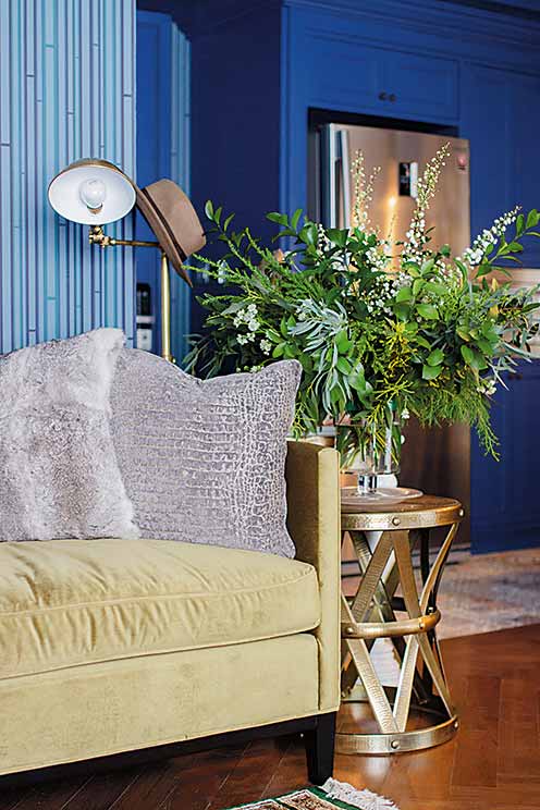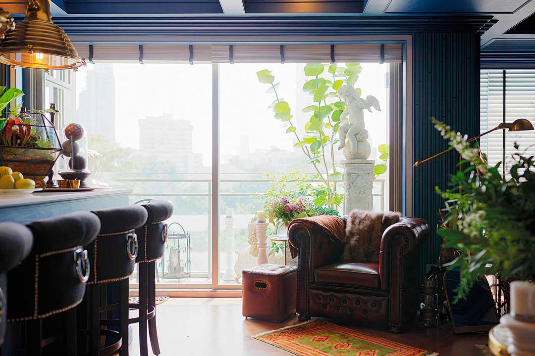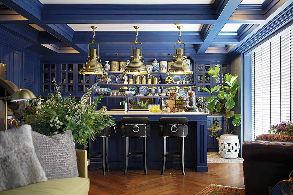 คุณเอทำการบ้านอย่างหนักจนได้ผลลัพธ์ที่คุณภาวิศพอใจเป็นอย่างมาก จุดแรกที่ดูสะดุดตาคงหนีไม่พ้นแพนทรี่ที่คุณเอออกแบบในสไตล์ยุโรป ดูประณีตสวยงามและตอบสนองฟังก์ชันการใช้งานอย่างครบครัน จัดโชว์เครื่องถ้วย ชาม และแก้วอย่างน่าทะนุถนอม เน้นบรรยากาศแบบปาร์ตี้เล็กๆ ฝ้าเพดานเพิ่มลูกเล่น โดยออกแบบเป็นฝ้าหลุม โดดเด่นด้วยคิ้วบัวดูทันสมัยและหรูหรา โทนสีส่วนใหญ่เป็นสีน้ำเงินตามที่เจ้าของบ้านชื่นชอบ