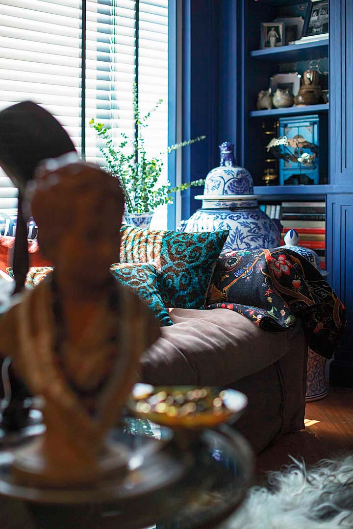 “ห้องนี้พี่ซื้อปล่อยทิ้งไว้เป็นแรมปี จนได้มาพบและพูดคุยกับคุณเอก็ตัดสินใจปรับปรุงห้องใหม่ทั้งหมด ความต้องการแรกของพี่เลยคืออยากให้มีชั้นเก็บของเยอะๆ บรรยากาศส่วนใหญ่เน้นโทนสีน้ำเงินหรือครามซึ่งเป็นสีโปรด”