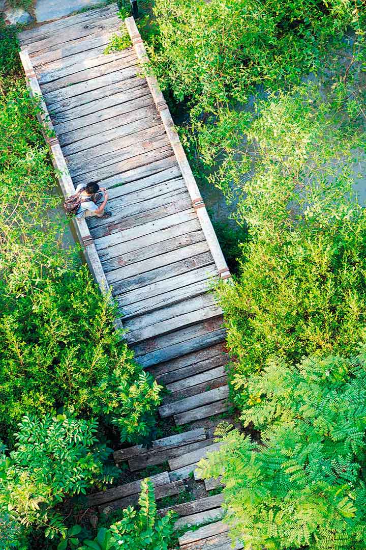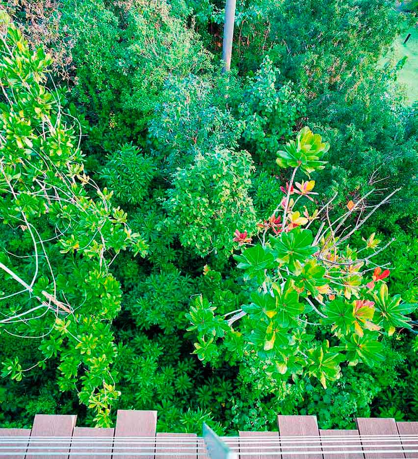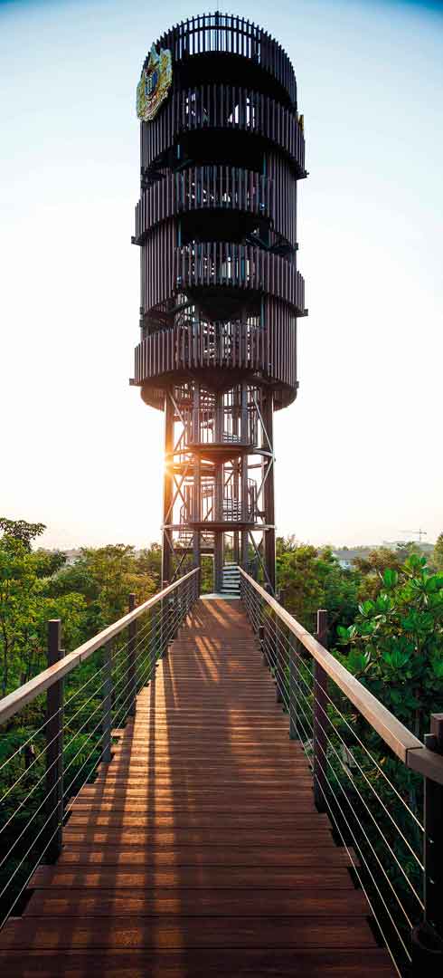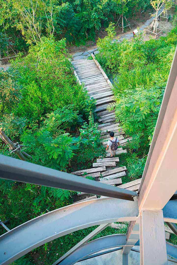 หลังเดินชมพรรณไม้จนเกือบครบเส้นทางผมยังแวะชมวิวทิวทัศน์รอบๆ บนหอชมป่า ซึ่งเป็นหอสูงที่โดดเด่นที่สุดในโครงการ สร้างไว้สำหรับใช้เป็นจุดชมเรือนยอดของต้นไม้ จากกล้าต้นเล็กๆ เราจะได้เห็นความเปลี่ยนแปลงในทุกครั้งที่มาเยือนจนกระทั่งต้นโตเต็มที่ แม้โครงการนี้จะเป็นเพียงแค่พื้นที่สาธารณะสำหรับคนเมือง แต่ก็มีส่วนช่วยสร้างระบบนิเวศเดิมให้กลับมาอุดมสมบูรณ์อีกครั้ง ทว่าจุดสีเขียวเล็กๆ จุดหนึ่งบนพื้นคอนกรีตขนาดใหญ่ของกรุงเทพมหานครจะสามารถเติมเต็มสิ่งแวดล้อมและคุณภาพชีวิตที่ดีของคนกรุงได้เพียงพอหรือไม่ โครงการสร้างระบบนิเวศที่ดีและยั่งยืนแบบนี้จะหยุดหรือขยายใหญ่ต่อไปกลายเป็นป่าใหญ่ในเมืองได้แค่ไหน คงเป็นสิ่งที่ทดสอบศักยภาพของคนกรุงและผู้ที่เกี่ยวข้องกันต่อไป