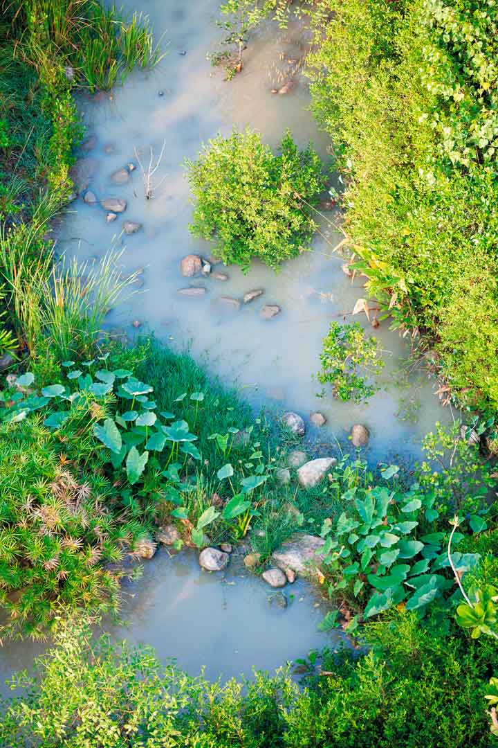 อีกหนึ่งสิ่งที่สำคัญและน่าสนใจไม่น้อยคือลักษณะและรูปแบบการสร้างป่านิเวศตามแนวคิดของ ศาสตราจารย์ ดร.อาคิระ มิยาวากิ ซึ่งใช้เวลาเพียง 2 – 3 ปีในการสร้างป่าที่สมบูรณ์ มีหลักการง่ายๆ ที่สามารถทำตามได้ไม่ยาก เริ่มต้นจากการสร้างเนินดินและเตรียมดิน โดยดินชั้นล่างเป็นดินเหนียวที่มีความเป็นกรดเล็กน้อย จากนั้นถมดินชนิดเดิมแต่ผสมทรายขี้เป็ดในอัตราส่วน 2:1 ส่วนชั้นบนถมดินที่มีค่าเป็นกลางผสมดินแกลบ ขุยมะพร้าว และปุ๋ยคอกที่ตากแดดไว้อย่างน้อย 1 สัปดาห์ ผสมกันในอัตราส่วน 3:2:1 หลังจากสร้างเนินดินเสร็จให้ทิ้งไว้ 3 – 4 สัปดาห์ เพื่อให้เกิดกระบวนการหมัก จากนั้นนำกล้าไม้พื้นเมืองที่เพาะด้วยเมล็ดจนมีระบบรากแข็งแรงดีและมีความสูง 80 – 100 เซนติเมตรลงปลูก โดยนำกล้าไปจุ่มน้ำจนชุ่ม ปลูกให้ได้ระยะห่างกันประมาณ 3 – 4 ต้นต่อตารางเมตร และปลูกแบบสุ่ม ไม่ต้องเป็นแถวหรือเป็นแนว โดยผสมผสานต้นไม้หลายระดับ ทั้งไม้ยืนต้น ไม้พุ่ม และไม้คลุมดิน นอกจากนี้ยังมีเทคนิคอื่นๆ อีก อย่างการใช้ฟางข้าวหรือวัสดุที่ย่อยสลายได้คลุมดินเพื่อให้เกิดความชื้นอยู่เสมอ ใช้เชือกฟางยึดต้นกล้ากับไม้ไผ่ที่เหลาตรงเป็นไม้หลัก ให้น้ำอย่างสม่ำเสมอโดยเฉพาะช่วงหน้าแล้งต้องไม่ปล่อยให้ดินแห้ง และกำจัดวัชพืชในช่วงปีแรก ต่อมาในปีหลังเมื่อต้นไม้เจริญเติบโตแล้ว ระบบนิเวศจะควบคุมปริมาณวัชพืชเอง
