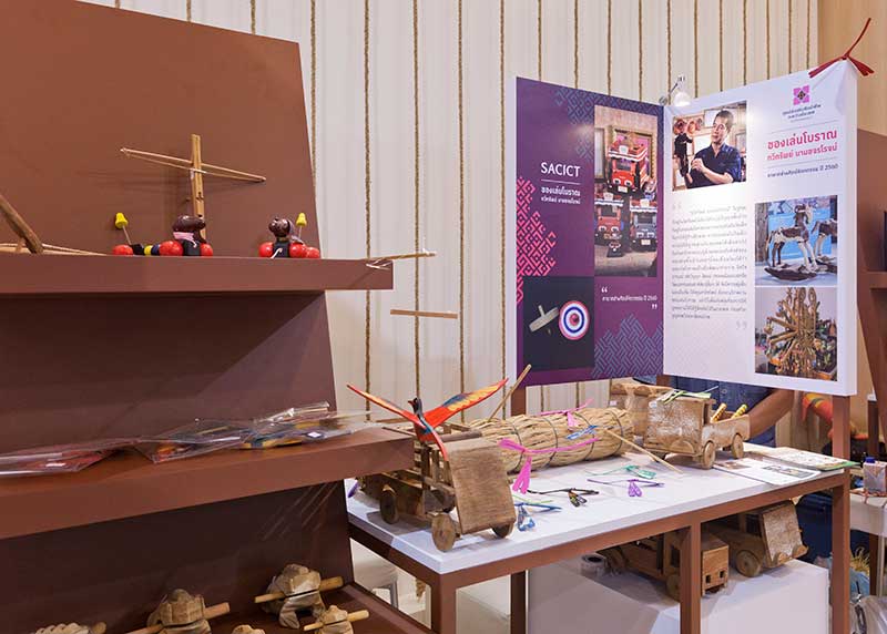 ของเล่นไทยๆสีสันน่ารัก อาทิลูกข่าง โมบายมือ ไม้ตอก ทุกชิ้นล้วนเกิดจากภูมิปัญญาของบรรพบุรุษปู่ย่าตายาย สะท้อนภูมิปัญญาท้องถิ่นที่กุลศโลบายการใช้ของเล่นเป็นการสร้างและฝึกทักษะให้เด็กๆ ทั้งทางด้านร่างกาย จิตใจ อารมณ์ สังคมและสติปัญญาอีกด้วย