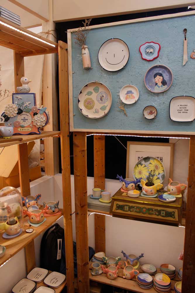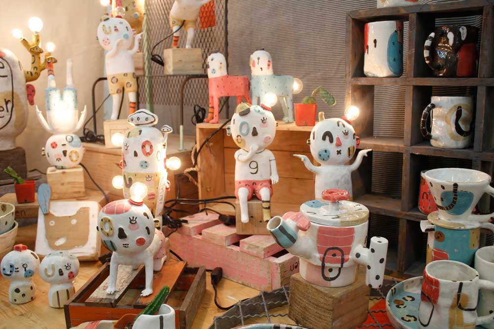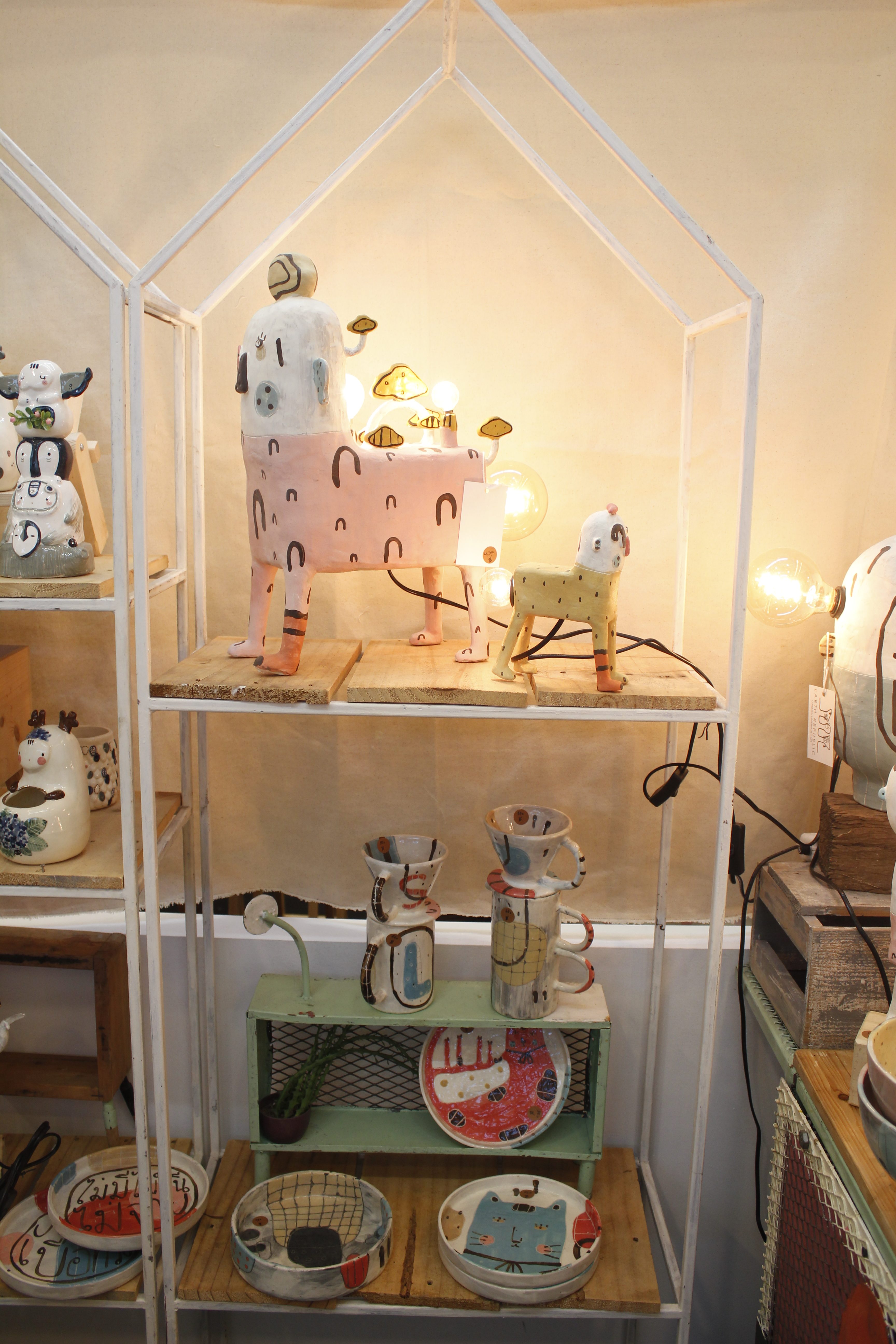 ร้านเซรามิกที่อยู่ร่วมบูธเดียวกับ ORA CLAY ตัวคาแร็กเตอร์และลายเพ้นท์ของร้านนี้อาจจะดูแปลก แต่จริงๆ แล้วมีที่มา โดยเจ้าของร้านได้บอกว่าตัวคาแร็กเตอร์ต้องการปั้นออกมาให้ดูขี้เล่น สนุกสนาน ส่วนลายเพ้นท์ได้แรงบันดาลใจมาจากการปักผ้า ต่อผ้าแบบญี่ปุ่น จึงเอาทั้งสองอย่างนี้มาผสมผสานกัน ออกมาเป็นเอกลักษณ์อันโดดเด่นของร้านนี้ อีกทั้งชิ้นงานยังมีลูกเล่นโดยนำไปประกอบกับหลอดไฟ เป็นโคมไฟตั้งโต๊ะภายในบ้านให้ดูน่ารักแถมมีประโยชน์ด้านการใช้งานอีกด้วย