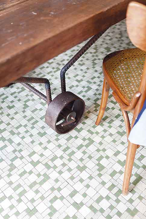 “พยายามเก็บองค์ประกอบความเรียบง่าย ความสวยงาม และเค้าโครงเดิมตามความคลาสสิกของบ้านเอาไว้ให้มากที่สุด ทั้งหน้าตาเดิมของบ้านแผงประตูหน้าต่าง เหล็กดัดเดิม รวมไปถึงวัสดุปูพื้นเดิมซึ่งเป็นกระเบื้องโมเสกแผ่นเล็กหลากสีสันที่จัดเรียงแพตเทิร์นได้น่าสนใจ”