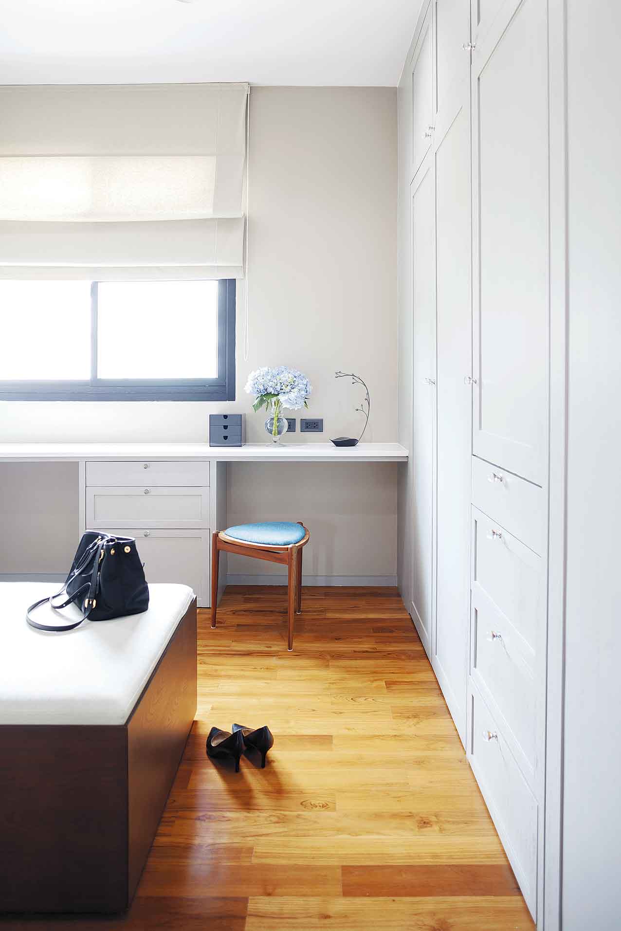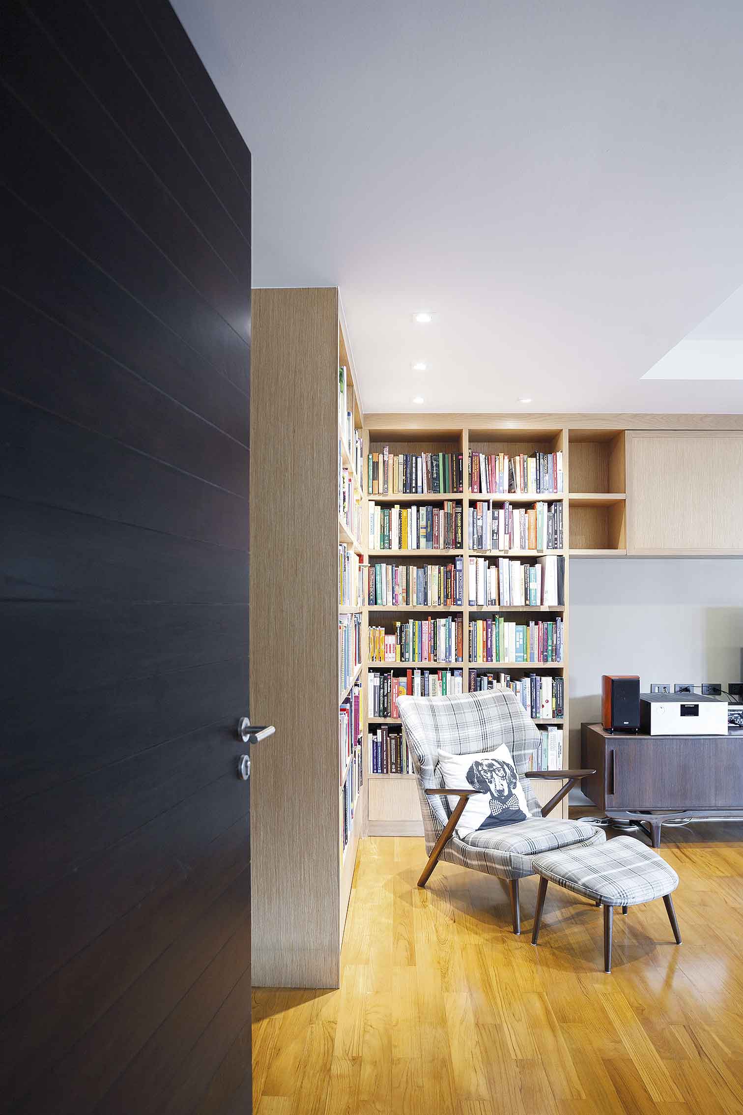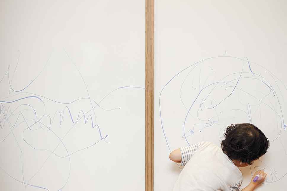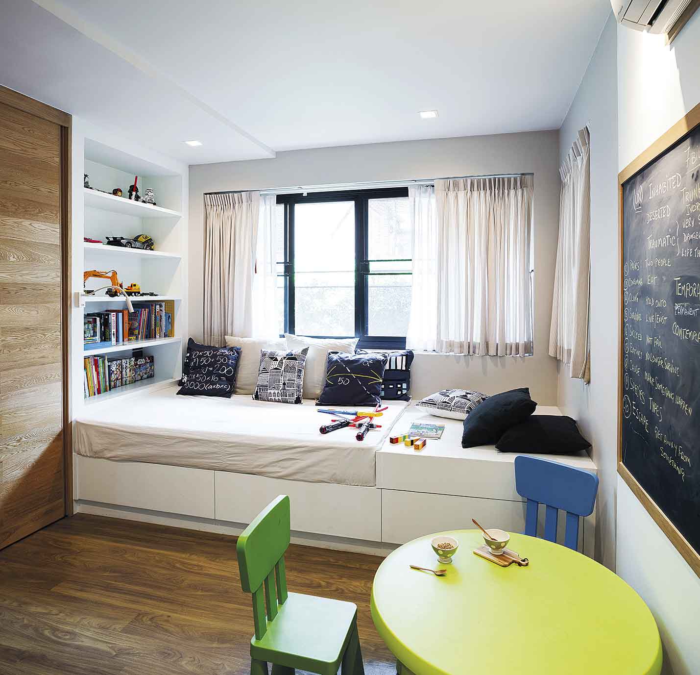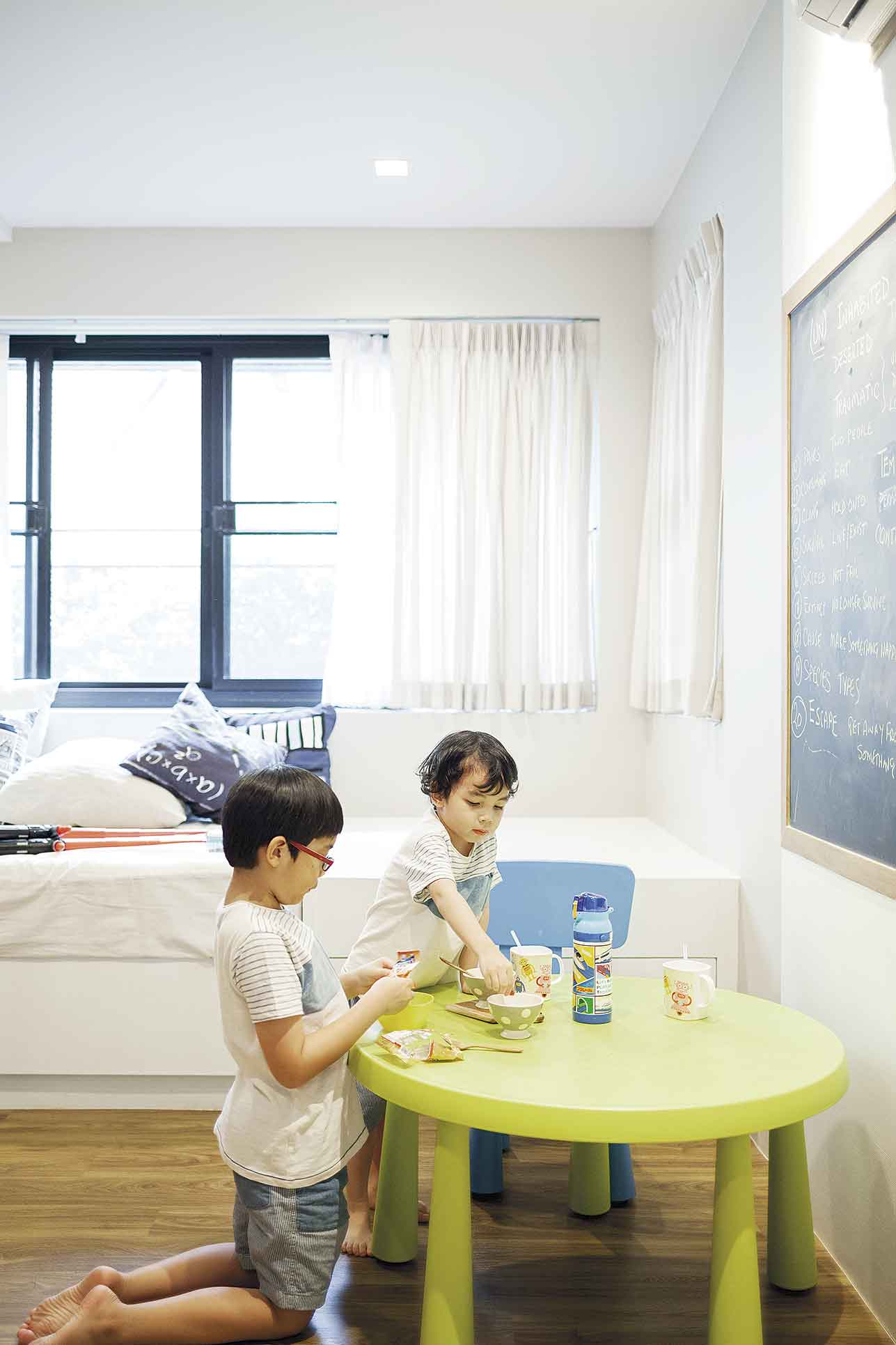 “คุยกับมัณฑนากรว่าเราอยากมีพื้นที่เผื่อไว้สำหรับให้ลูกๆ ได้ทำกิจกรรมในแบบของพวกเขาเอง เช่น เวลาที่มีเพื่อนๆ มาเล่นด้วยหรือมีปาร์ตี้กัน อยากให้ทุกอย่างปรับเปลี่ยนการใช้งานได้ ที่สำคัญที่สุดคือมีที่เก็บของได้เยอะๆ เพราะบางทีมีติวหนังสือที่บ้าน เมื่อมีห้องนี้เพิ่มเข้ามาก็ตอบโจทย์ได้ดี”