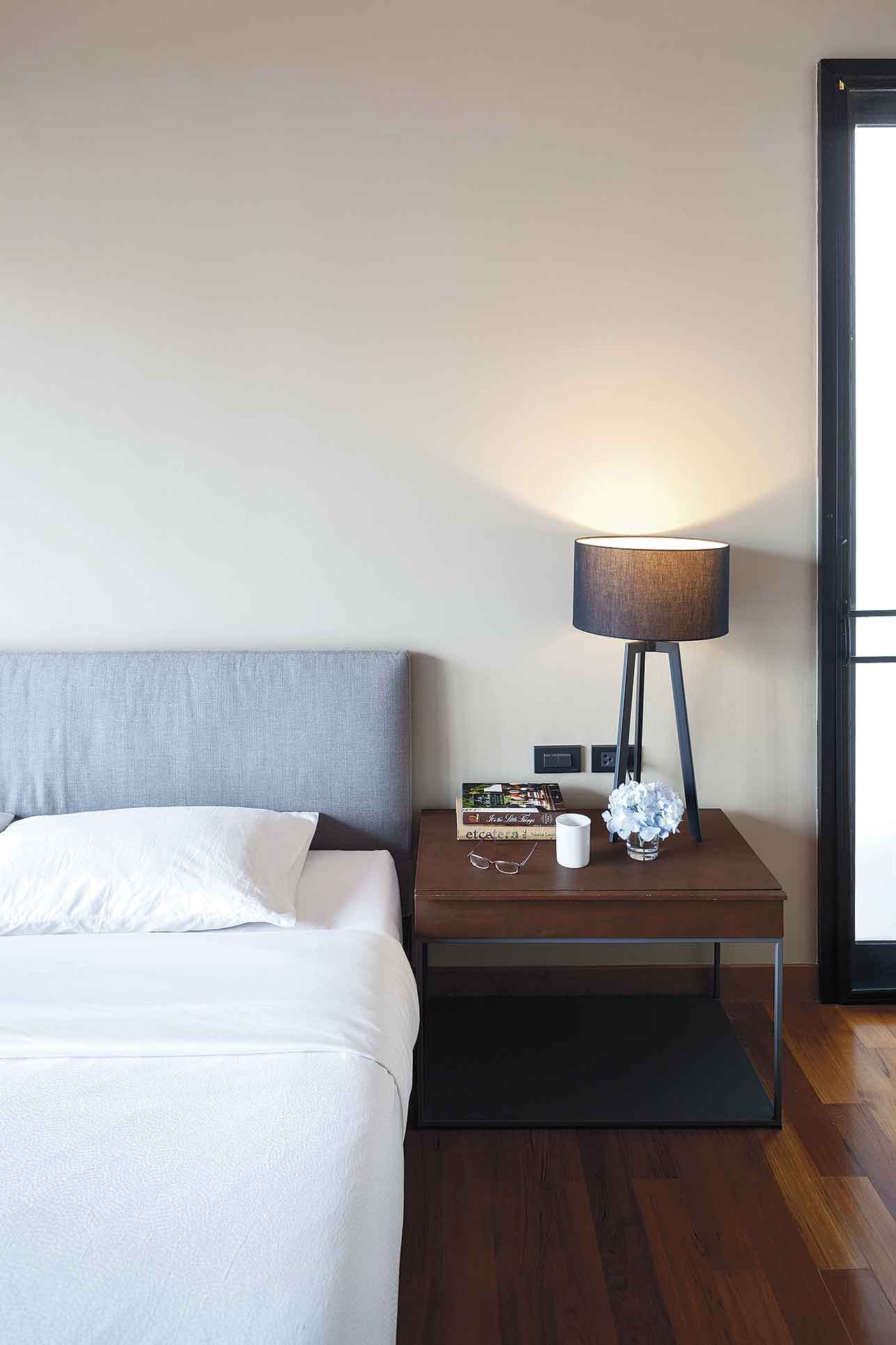 คุณเล็กกล่าวเสริมอีกว่า“ตอนแรกเลยโจทย์ที่ได้มาจริงๆ คือบ้านสไตล์โมเดิร์น เจอเจ้าของบ้านฝั่งผู้ชายก่อน พอได้มาเจอคุณก้อยก็รู้สึกว่าทุกอย่างดูนุ่มนวลขึ้น เช่น รายละเอียดของงานหวายที่ทำให้บรรยากาศของบ้านดูสบายขึ้น แต่เจ้าของบ้านมีความชอบคล้ายกัน จึงใช้สีเป็นตัวเชื่อมโยงความชอบของทั้งคู่ เพราะสีที่เลือกจะเป็นโทนอ่อน ไม่หวานมาก”