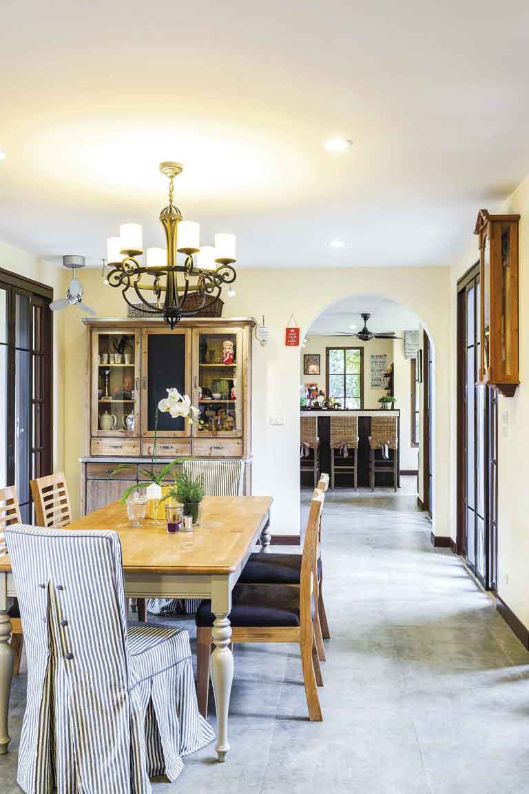 “ก่อนหน้านี้สไตล์โมร็อกโกมาแรงมาก แม้จะสวยแต่อยู่จริงๆ ยากมาก เพราะใช้สีแรงๆ ถ้าเน้นเรื่องประโยชน์ใช้สอยก็จะหาของตกแต่งที่เข้ากันได้ค่อนข้างยาก อย่างแก้วน้ำก็มีแต่สีสดๆ ตัดกัน เลยเลือกแต่งบ้านให้ออกแนวคลาสสิกนิดๆ เราหาของมาใส่บ้านได้ไม่ยาก อย่างแก้วใสๆ ก็ใช้ได้ คิดอะไรไม่ออกก็ใช้สีขาวเข้าไว้ แม้แต่สีเขียวก็ยังได้ มันจับต้องได้ง่ายกว่า ของตกแต่งก็หาได้ไม่ยากในท้องตลาด แค่เพียงเข้าใจเลือกหน่อย”