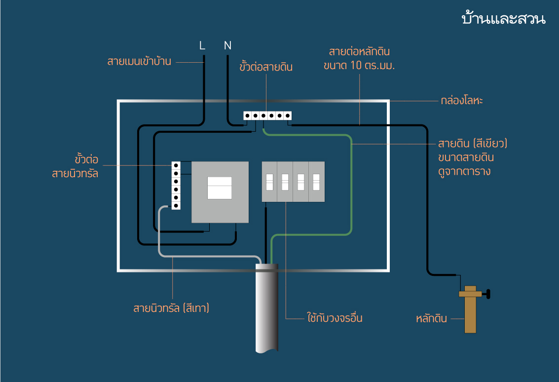 หมายเหตุ : สนใจเรื่องของสายดินและระบบไฟฟ้าในบ้าน สามารถหาข้อมูลเพิ่มเติมได้จากหนังสือ ช่างไฟฟ้าในบ้าน ของสำนักพิมพ์บ้านและสวน