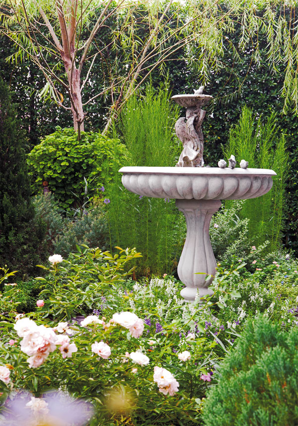 - นกกับน้ำเป็นของคู่กัน และถ้าสังเกตดี ๆ นกจะชอบเล่นน้ำ เล่นจนเปียกแล้ว จึงใช้ปากตกแต่งขน เพราะนกจำเป็นต้องทำความสะอาดขนเช่นเดียวกับมนุษย์ ผิวน้ำจึงไม่ควรต่ำกว่าขอบบ่อ 2-3 เซนติเมตร และเพิ่มไม้พุ่มรอบฐานอ่างเผื่อกรณีนกอาบน้ำ น้ำที่กระเด็นจะได้ช่วยรดต้นไม้ด้านล่างไปในตัว ดังนั้น อ่างน้ำนกจึงถือเป็นองค์ประกอบสำคัญที่จะเชื้อเชิญให้นกมาอยู่เป็นเพื่อนของคุณได้แน่นอน