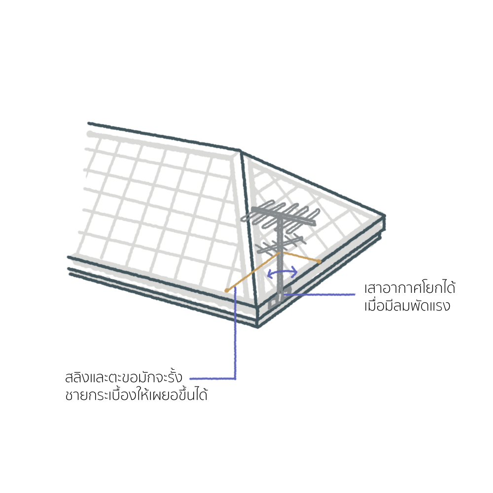1. กระเบื้องหลังคาเผยอขึ้นจากตะขอ (หรืออุปกรณ์อื่นๆ) และลวดสลิงที่ใช้ยึดรั้งเสาอากาศก้างปลาเกิดโยกขณะมีลมพัดแรงทำให้กระเบื้องเผยอขึ้นได้ วิธีแก้ไขต้องให้ช่างขึ้นไปขยับกระเบื้องให้เข้าที่แล้วยึดกระเบื้องให้แน่นขึ้น