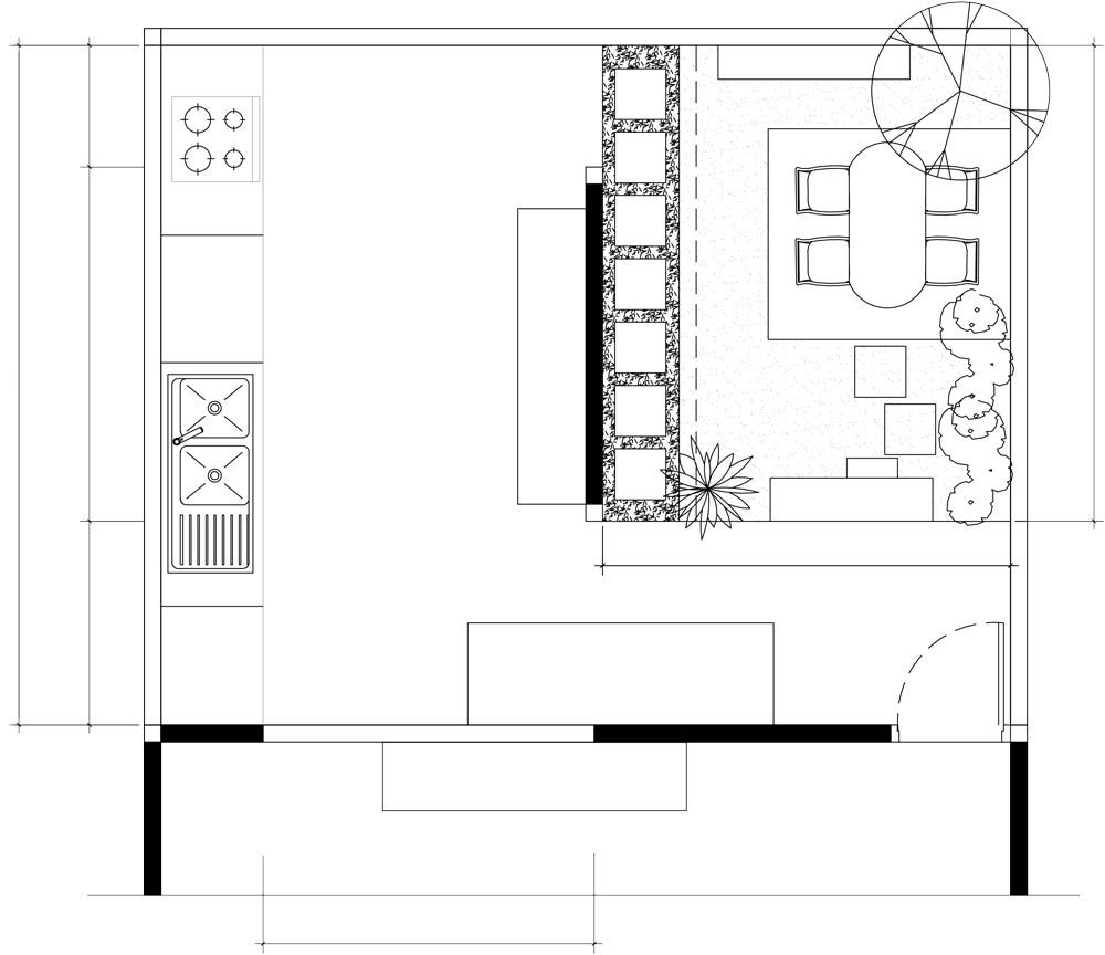 การต่อเติมครัวให้เชื่อมต่อกับสวนมีข้อควรคำนึงคือเรื่องของการวางตำแหน่งของครัวไม่ให้ขวางทางระบายน้ำ เช่นเดียวกับสวนซึ่งจะต้องจัดการไม่ให้เกิดน้ำท่วมขัง ในขณะการเลือกต้นไม้ปลูกควรเลือกเป็นต้นไม้กระถางที่สามารถปรับเปลี่ยนโยกย้ายได้ง่ายและเลือกพรรณไม้ที่ทนร่มได้ดี