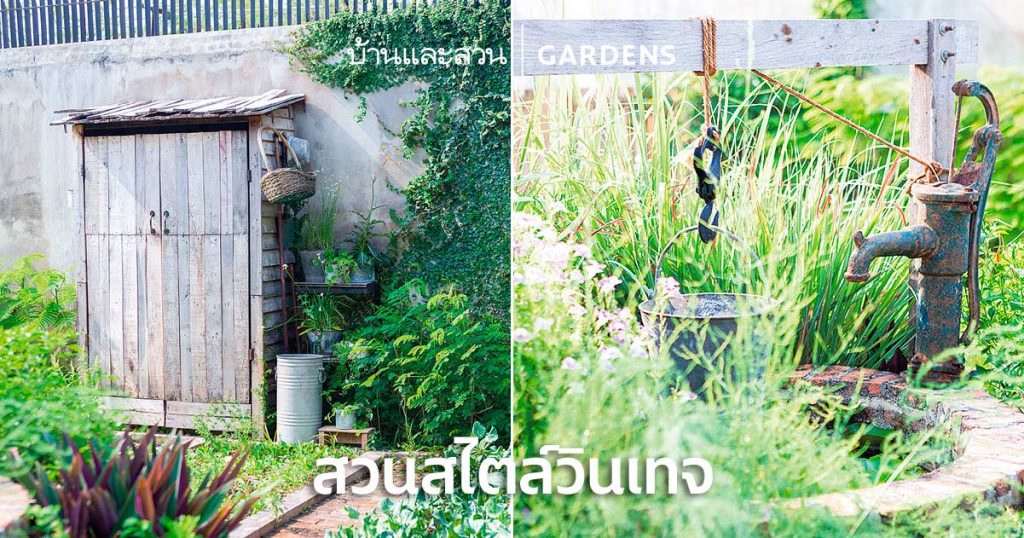 สวนสไตล์วินเทจ ให้ความรู้สึกอบอุ่นดูเรียบง่าย สบายตา มีการเลือกปลูกดอกไม้หลากสีสันในโทนสีอ่อน ๆ เพื่อสร้างอารมณ์หวาน ๆ