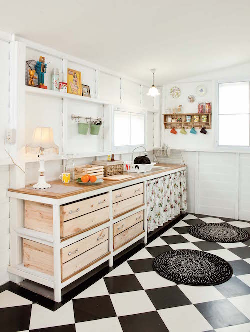จากไอเดียเจ้าของบ้านที่ต้องการสร้างบ้านให้มีขนาดเล็กกะทัดรัด ตกแต่งในสไตล์วินเทจโทนสีขาว – ดำตามความชอบ โครงสร้างของตัวบ้านใช้โครงเหล็ก กรุผนังด้วยไม้ฝาเฌอร่าสีขาว ปูพื้นภายนอกด้วยวีว่าบอร์ด ภายในห้องครัวปูพื้นด้วยกระเบื้องยางซึ่งติดตั้งกันเอง ตกแต่งให้มีกลิ่นอายของบ้านพักแบบหัวหิน ด้วยงบประมาณไม่รวมของตกแต่ง 3.5 แสนบาท