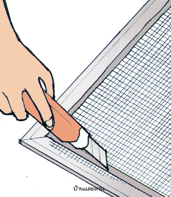 4 ตัดแต่งขอบมุ้งลวดที่เหลือออกทิ้งให้เรียบร้อยด้วยคัตเตอร์เป็นอันเสร็จสิ้น