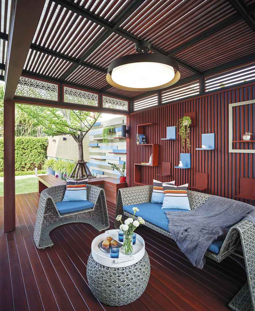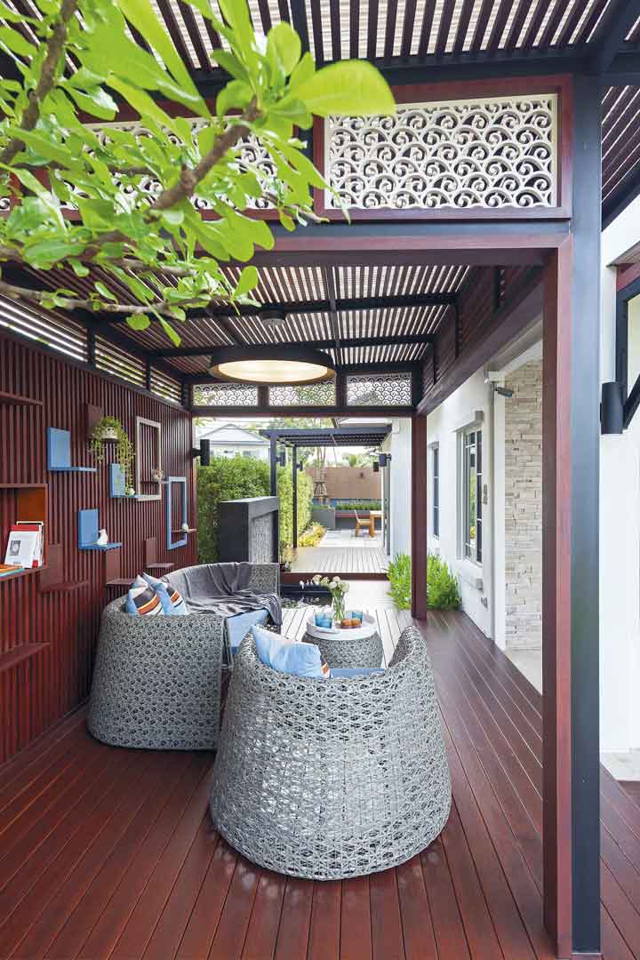 สวนสไตล์โมเดิร์นทรอปิคัลนี้เน้นการออกแบบสวนแบบเรียบสวย มีพื้นที่โปร่งและดูแลง่าย เป็นสวนที่มีสีสันและมีฟังก์ชันสะดวกต่อการใช้งาน พื้นที่ด้านหน้าเป็นสนามหญ้าเปิดสเปซโล่งๆ มีศาลาอยู่ตรงกลางซึ่งเชื่อมต่อมาจากตัวบ้าน ดีไซน์ของศาลาเน้นความโปร่งเพื่อเปิดรับลม ส่วนถัดมาเป็นผนังน้ำตก แล้วทำเดคไม้เล็กๆเชื่อมต่อไปยังสวนหลังบ้าน ซึ่งสามารถวางบีนแบ็กหรือเบาะนั่งเล่นเอกเขนกอยู่กับพื้น ใกล้ๆกันมีผนังน้ำล้น หากมองจากห้องนั่งเล่นก็จะเห็นผนังน้ำล้นเป็นมุมรับสายตาอย่างพอดิบพอดี อ่านต่อ…