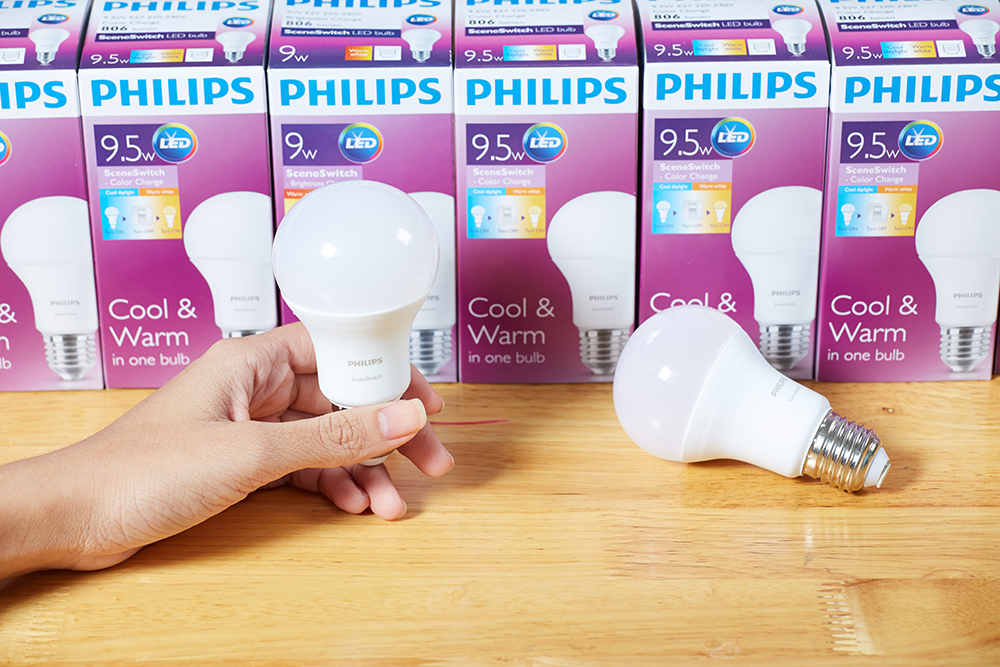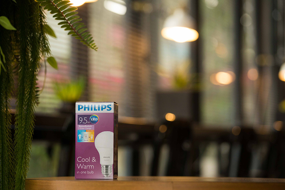 และเมื่อพูดถึงผลิตภัณฑ์คุณภาพที่ Philips ได้มุ่งมั่นออกมาเพื่อรังสรรค์การใช้แสงไฟคุณภาพอย่างแท้จริง จึงได้ส่งผลิตภัณฑ์ ในกลุ่ม LED SceneSwitch มาตอบโจทย์การเปลี่ยนบรรยากาศในที่อยู่อาศัยด้วยแสงไฟ นั่นก็คือ Philips LED SceneSwtich Color Change ที่สามารถเปลี่ยนโทนสีได้แบบ 2 in 1 (ระหว่าง cool daylight และ warm white) ในหลอดเดียว โดยใช้กับสวิตซ์ไฟตัวเดิมได้ทันที เพียงเปิดไฟครั้งแรกจะได้แสงไฟสีขาว และ ปิดและเปิดสวิซ์อีกครั้งแสงไฟจะเปลี่ยนเป็นแสงสีวอร์ม ช่วยจะช่วยเปลี่ยนบรรยากาศให้ภายในบ้านของคุณได้แบบง่ายๆ