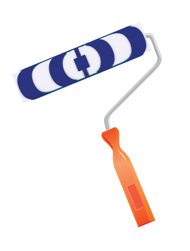 วิธีใช้ : ใช้ลูกกลิ้งกลิ้งจากบนลงล่างจนเต็มผนัง