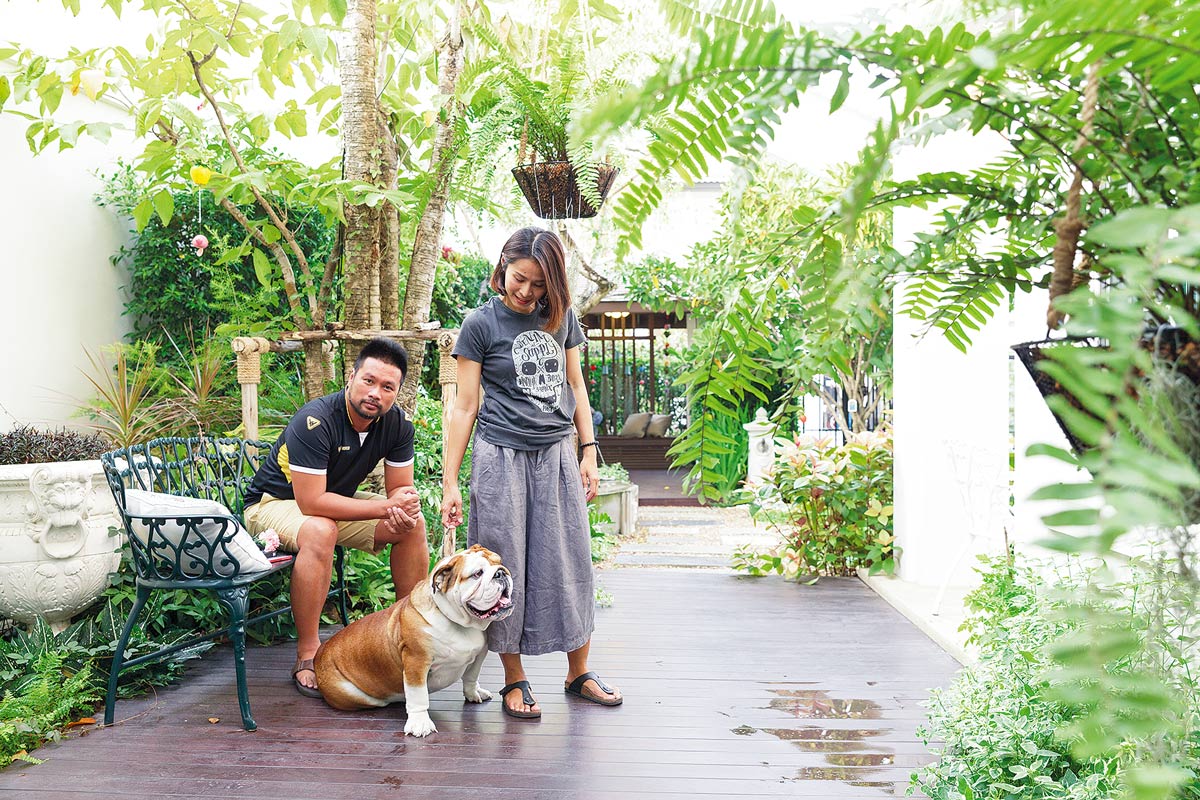 สวนภายในบ้านจัดสรรย่านพุทธมณฑลของ คุณบรรพต ดอนอ้อยและคุณสาวิตรี ไทรวิบูลย์สุข น่าจะให้คำตอบแก่เราได้ดี เพราะนอกจากเรื่องความสวยงามแล้ว สวนนี้ยังดูแลรักษาง่าย ด้วยฝีมือการออกแบบของ คุณหมู-เริงศักดิ์ โพธิ์วิจิตร นักออกแบบสวนสไตล์ร่วมสมัยที่ผสมผสานสไตล์ต่าง ๆ เข้ากับของตกแต่งที่มีอยู่เดิมได้อย่างกลมกล่อม สวนที่ลงตัว