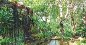 จากทางเข้าบ้านผ่านทางเดินปูแผ่นหินธรรมชาติแทรกด้วยกรวดแม่น้ำทอดโค้งเข้าไปในสวน เผยให้เห็นอ่างน้ำพุที่คุณบรรพตซื้อมาเองตั้งแต่ก่อนจัดสวน ซึ่งกลายเป็นโจทย์และจุดเด่นของสวนแห่งนี้ ท่ามกลางพรรณไม้หลากหลายชนิดที่ปลูกรับกันอย่างลงตัว
