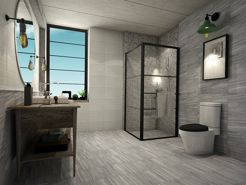 อีกหนึ่งทางเลือกสำหรับหนุ่มที่ชอบความดิบของพื้นผิวธรรมชาติ การตกแต่งด้วยกระเบื้องลายหินธรรมชาติเป็นอีกไอเดียที่คุณน่าจะชอบ เพราะ นอกจากจะไม่ต้องดูแลรักษามาก ยังให้ความรู้สึกอิงธรรมชาติได้มากเช่นเดียวกับลวดลายไม้ และยังเหมาะกับหนุ่มที่ชอบห้องน้ำโทนขรึม อาจจะเพิ่มลวดลายธรรมชาติเข้ากับวัสดุในสไตล์ลอฟท์ ดูกลมกลืนและยังสะท้อนตัวตนความเป็นเราได้ดี