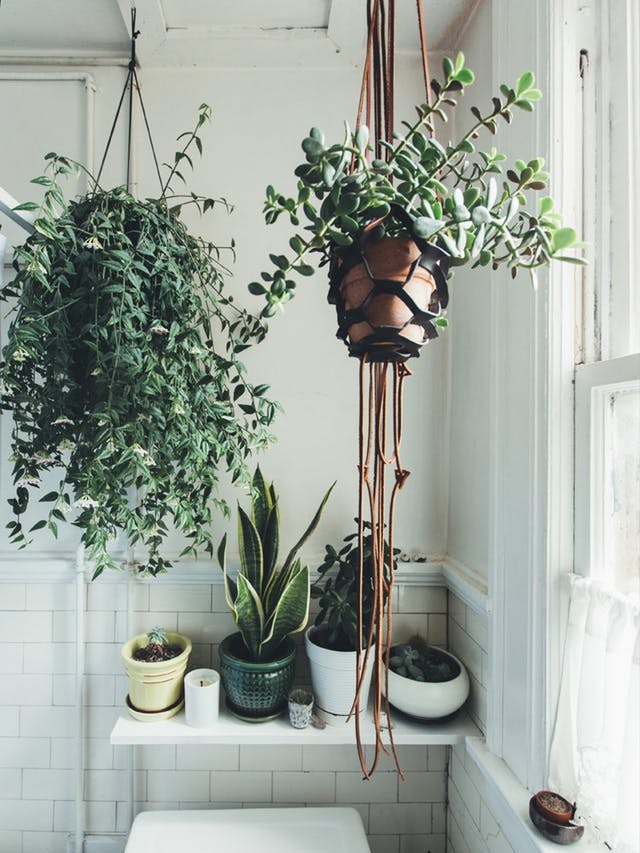 ซึ่งวิธีการตกแต่งต้นไม้ในห้องน้ำก็มีหลายรูปแบบ เช่น จัดไว้ริมระเบียงห้องน้ำแบ่งพื้นที่เฉพาะสำหรับต้นไม้ หรือจัดไว้มุมใดมุมหนึ่งของห้อง สุดท้ายถ้าห้องน้ำมีพื้นที่จำกัด การปลูกสวนแนวตั้งหรือสวนแขวน ก็ช่วยให้ห้องน้ำอิงธรรมชาติขึ้นได้