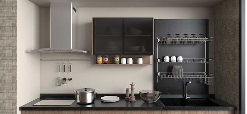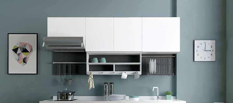 เพิ่มฟังก์ชันให้มุมเก็บของด้วยการสร้างรางและชั้นแบบโปร่งกันดีกว่า เพราะไม่ว่าจะเป็นรางแขวนของติดผนัง หรือชั้นตะแกรงที่ช่วยให้ทั้งการเก็บ การวางของในห้องครัวดูโปร่งโล่งได้ค่ะ ลองมองหาว่ามุมไหนยังติดตั้งได้ ไม่ว่าจะเป็นชั้นวางแก้วใต้ตู้แขวน มุมคว่ำจานเหนือซิงค์ล้างจาน หรือรางแขวนอุปกรณ์ข้างๆเคาน์เตอร์ ก็ช่วยให้ครัวเล็กดูไม่อึดอัดแล้วค่ะ