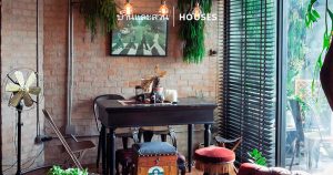 ใช้พื้นที่จอดรถเป็นส่วนหนึ่งของตัวบ้าน ซึ่งใช้พื้นที่ด้านล่างของตัวบ้าน ดังนั้นต้องออกแบบพื้นที่ข้างล่างให้มีลักษณะกึ่งทึบกึ่งโปร่งเพื่อการระบายอากาศที่ดี ส่วนชั้นบนให้เป็นพื้นที่ส่วนตัว เช่น ห้องนั่งเล่น ห้องนอน เป็นต้น