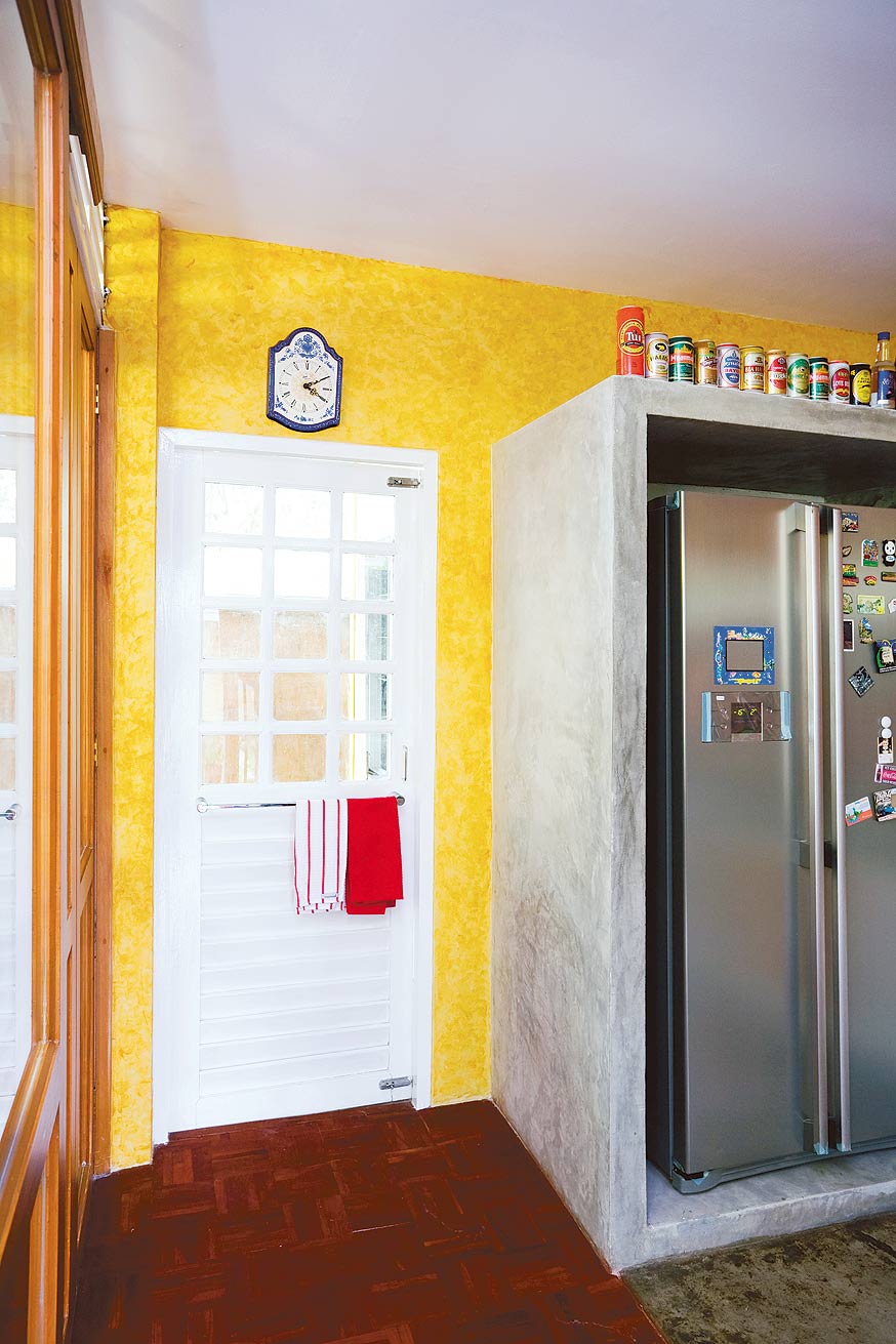 ครัวแบบที่2 เป็นครัวปูนที่สดใสขึ้นทันทีเมื่อเลือกใช้ผนังสีส้มสด ตัดกับความจัดจ้านของเหล่าอุปกรณ์ของใช้ เป็นแบบครัวปูนที่เหมาะกับทาวน์เฮ้าส์และบ้านเดี่ยว โดยฝั่งเตาแก๊สซึ่งเป็นส่วนปรุงให้ติดกับตัวเคาน์เตอร์ ต่อเนื่องเป็นซิงค์ล้างจาน พร้อมสร้างกล่องตู้เย็นให้ต่อเนื่องกันเป็นพื้นที่ใช้งานในแนวเดียวกัน สำหรับครัวปูนห้ามลืมเคลือบน้ำยาปูนซีเมนต์เพื่อให้ง่ายในการทำความสะอาด