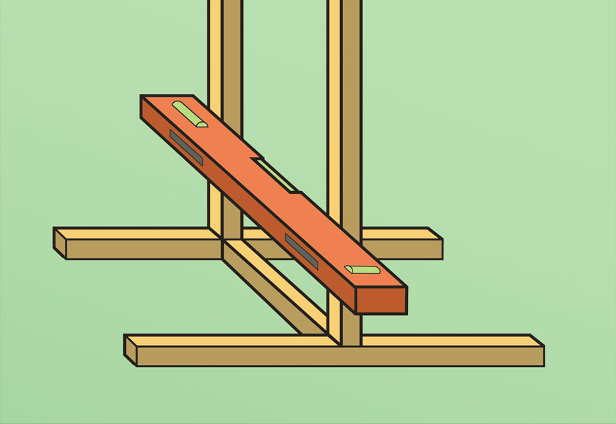 1 นำระดับน้ำมาวัดระดับเพื่อกำหนดตำแหน่งที่จะติดตั้งเหล็กฉากเพื่อเสริมความแข็งแรงให้ขาโต๊ะหรือเก้าอี้ไม้ ใช้ดินสอทำเครื่องหมายไว้ที่บริเวณจุดติดตั้งเหล็กฉากแล้วใช้สว่านเจาะรูตาม