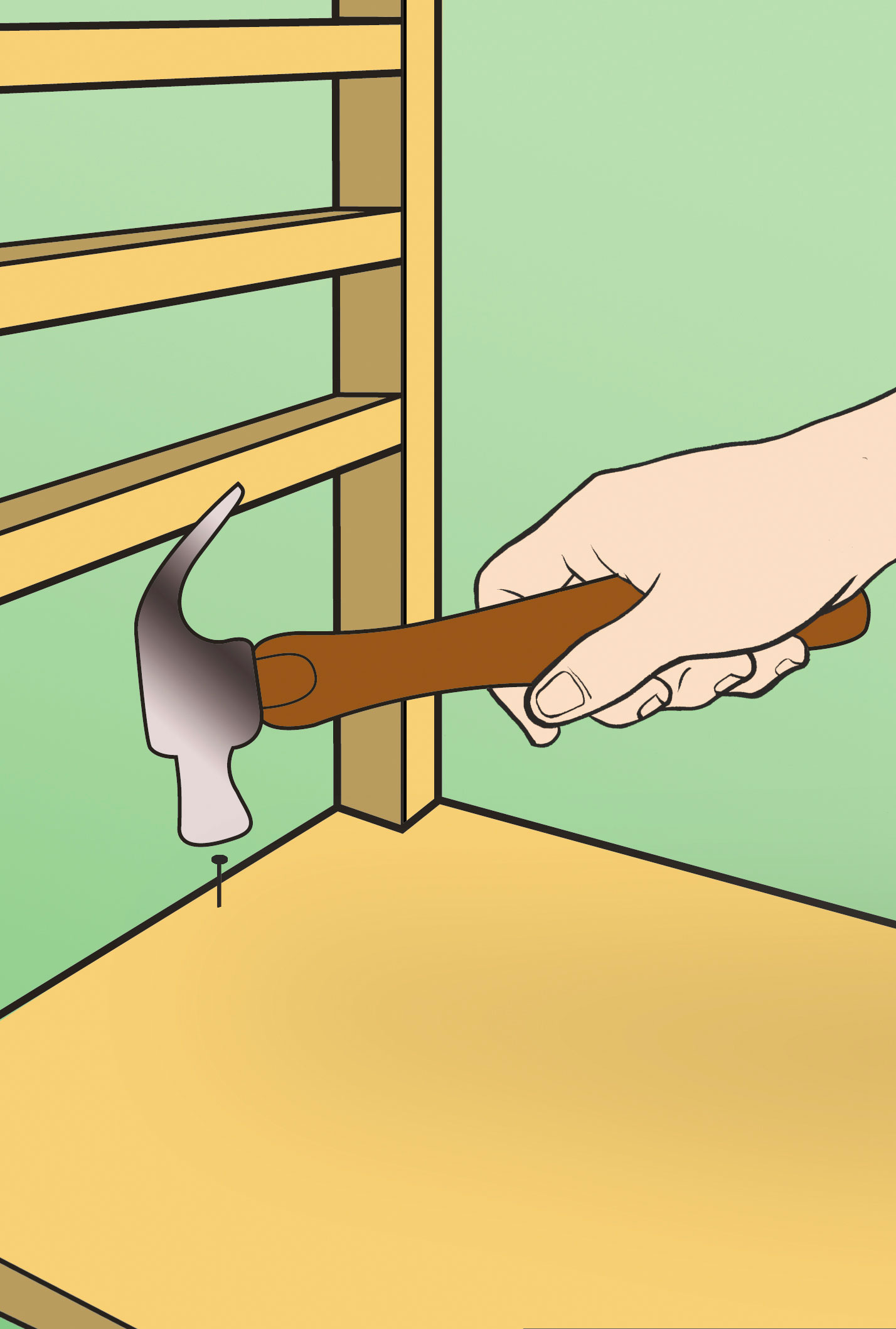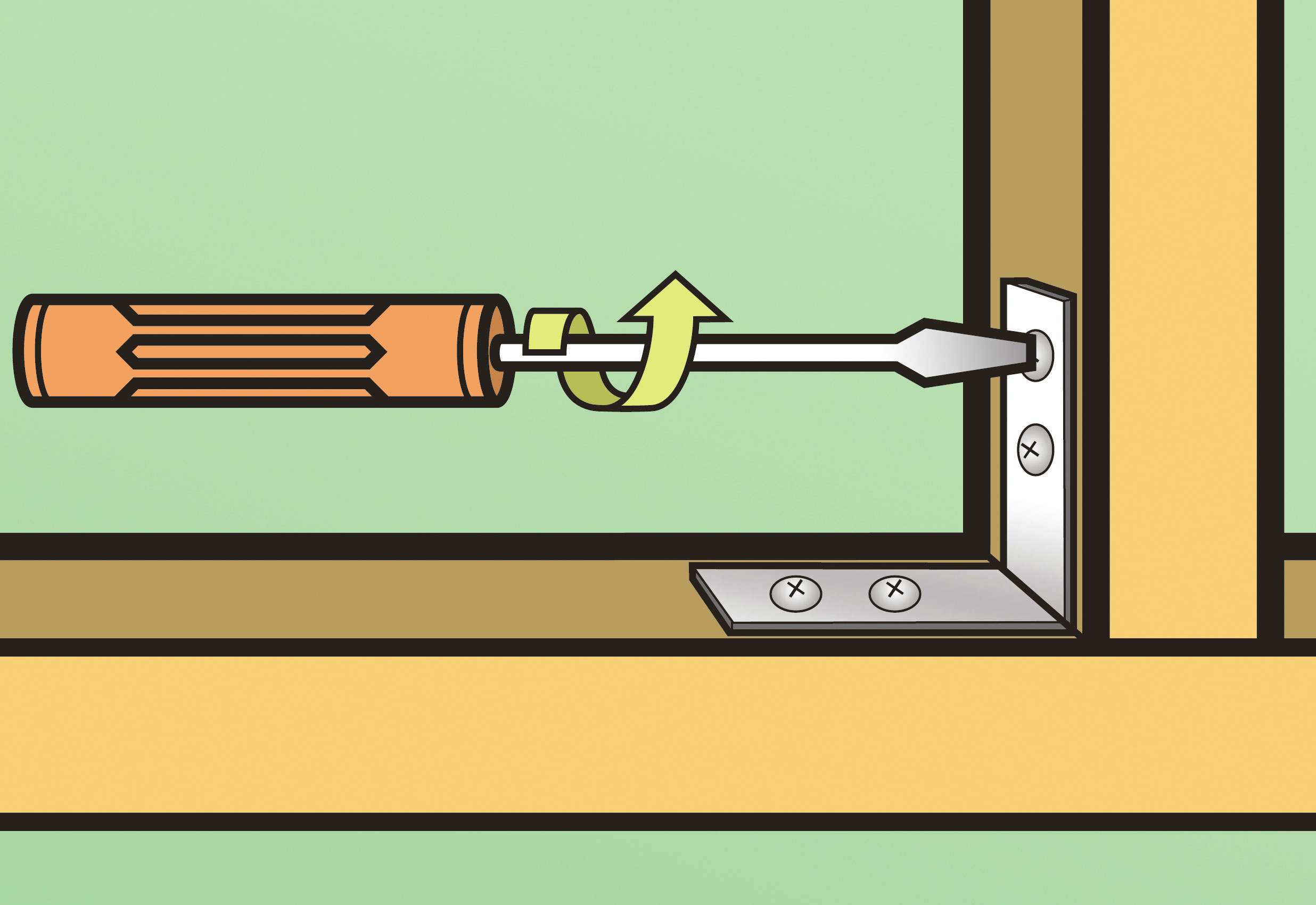 2 ใช้ตะปูเกลียวยึดเหล็กฉากให้แน่น แต่ถ้าต้องการให้มีความแข็งแรงเป็นพิเศษ โดยเฉพาะเก้าอี้ก็ให้ติดยึดเหล็กฉากทั้งด้านล่างและด้านบน