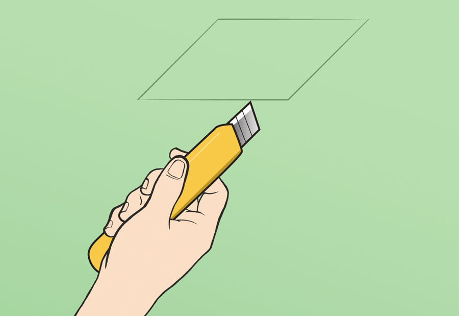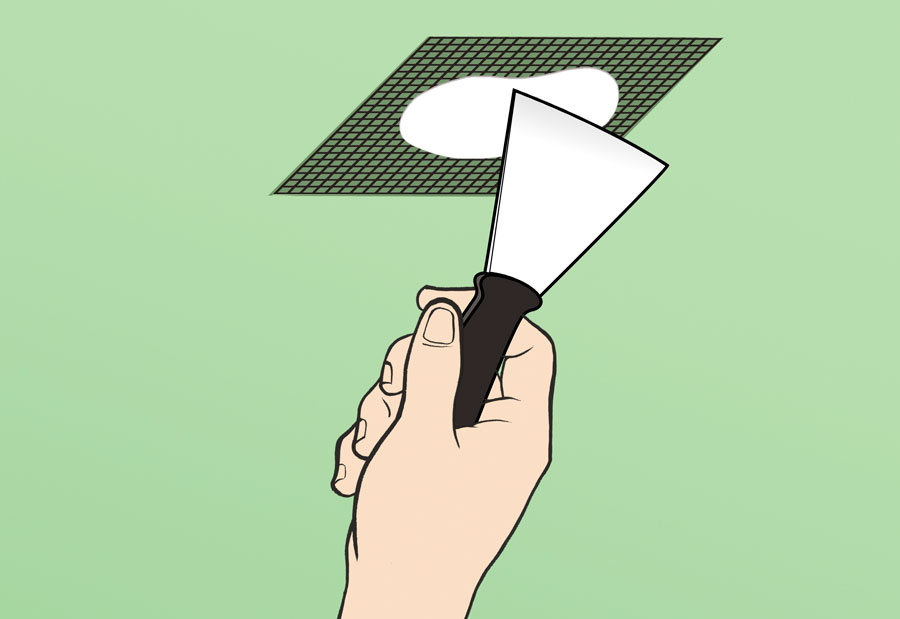 2 ตัดแผ่นยิปซัมชิ้นใหม่หรือใช้แผ่นซ่อมยิปซัมมาปิดแทนได้ โดยให้ขอบของแผ่นกว้างกว่าช่องว่างเล็กน้อย แล้วใช้อะคริลิกอุดโป๊อุดรอยต่อ จากนั้นทำความสะอาดพื้นผิวแล้วทาสีตกแต่งให้ใกล้เคียงกับของเดิม