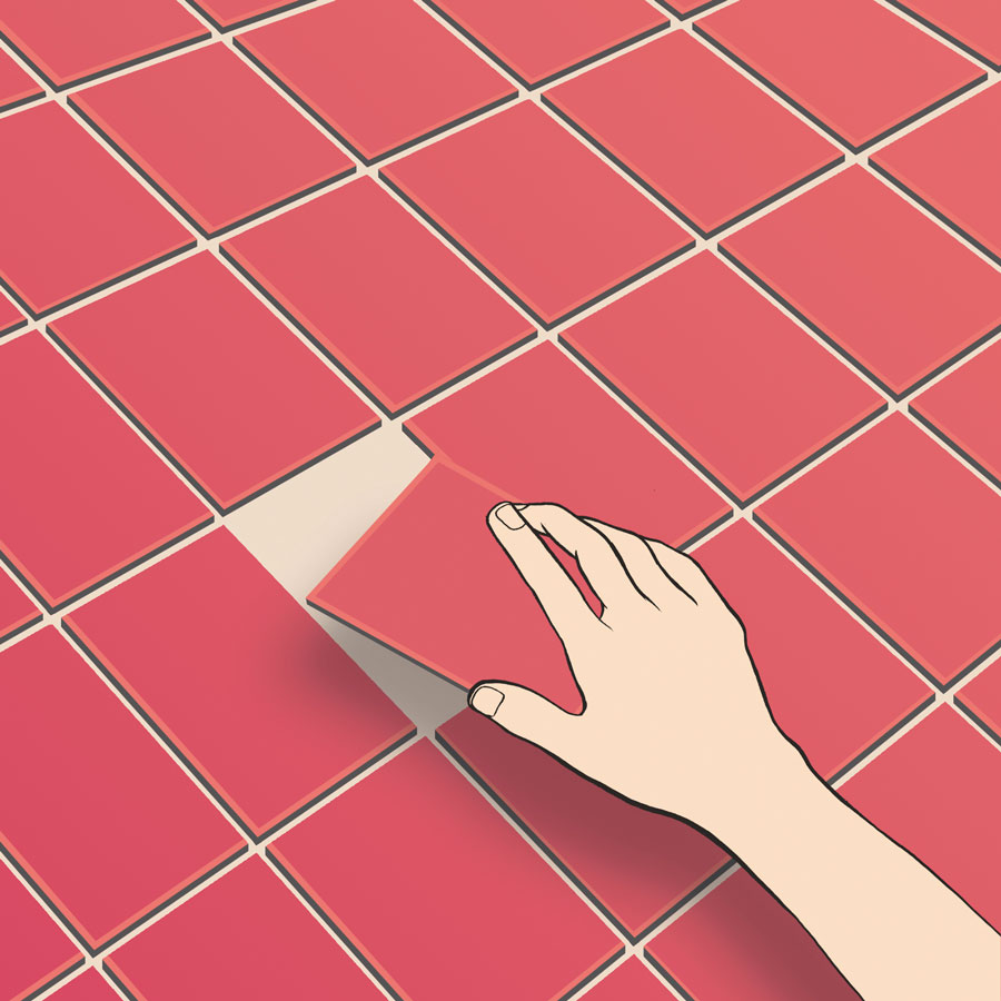 1 เลาะกระเบื้องบริเวณที่จะซ่อมแซมออก โดยให้กินพื้นที่มากกว่าบริเวณที่รั่วซึมประมาณ 15 เซนติเมตร รอบรอยรั่ว