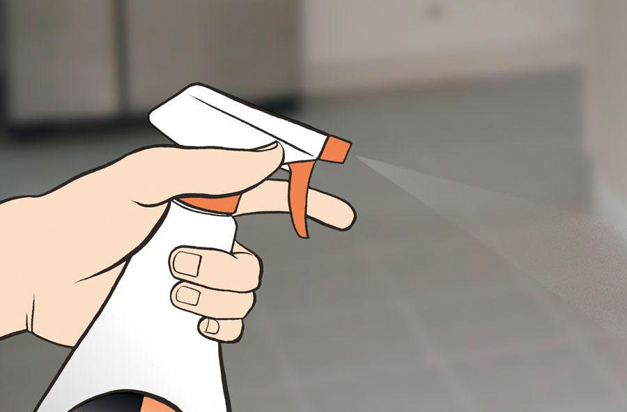 ควรลองสเปรย์น้ำยากันลื่น ในพื้นที่เล็กๆก่อน เพื่อทดสอบว่าน้ำยาทำปฏิกิริยากับสีของกระเบื้องหรือไม่ เมื่อได้ผลเป็นที่พอใจแล้ว จึงสเปรย์น้ำยาในพื้นที่ที่ต้องการ หากต้องการความฝืดมากขึ้น ให้เพิ่มระยะเวลาออกไป เช่น ทิ้งไว้ 30 นาที สำหรับกระเบื้องทั่วไป จนถึง 1 ชั่วโมง สำหรับกระเบื้องที่มีความเงามาก
