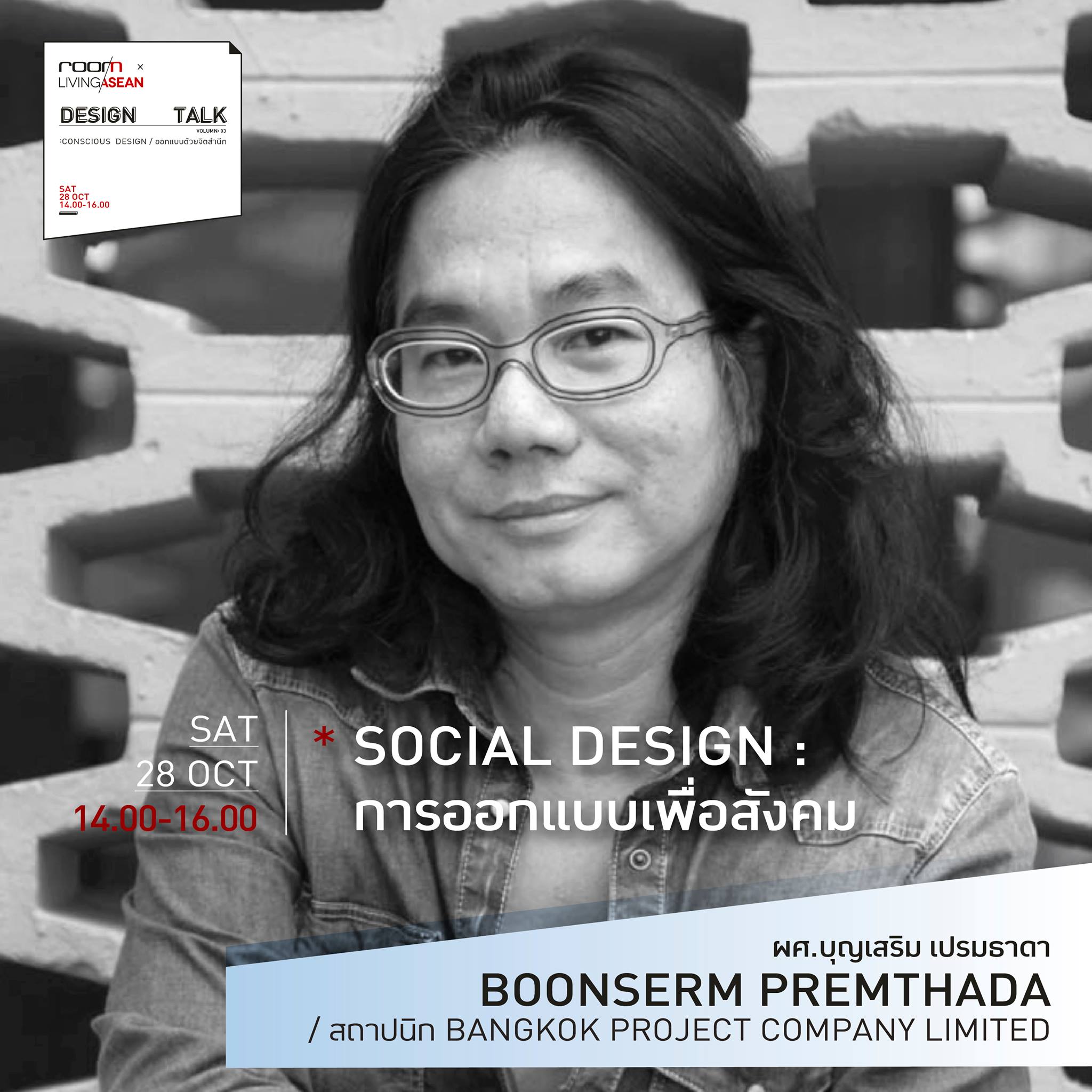 สำหรับใครที่อยากร่วมพูดคุยแลกเปลี่ยนความคิดเห็นกับ ผศ.บุญเสริม ในหัวข้อ “Social Design : การออกแบบเพื่อสังคม” พบกันได้ในงานเสวนา Room  x  Living  ASEAN  Design  Talk ครั้งที่ 3 “Conscious Design : ออกแบบด้วยจิตสำนึก” วันเสาร์ที่ 28  ตุลาคม 2560 เวลา 14.00 -16.00 น. ในงานบ้านและสวนแฟร์  2017 โซน Room Pavilion, อิมแพ็ค เมืองทองธานี สำรองที่นั่งฟรีที่ www.baanlaesuan.com/designtalk-register