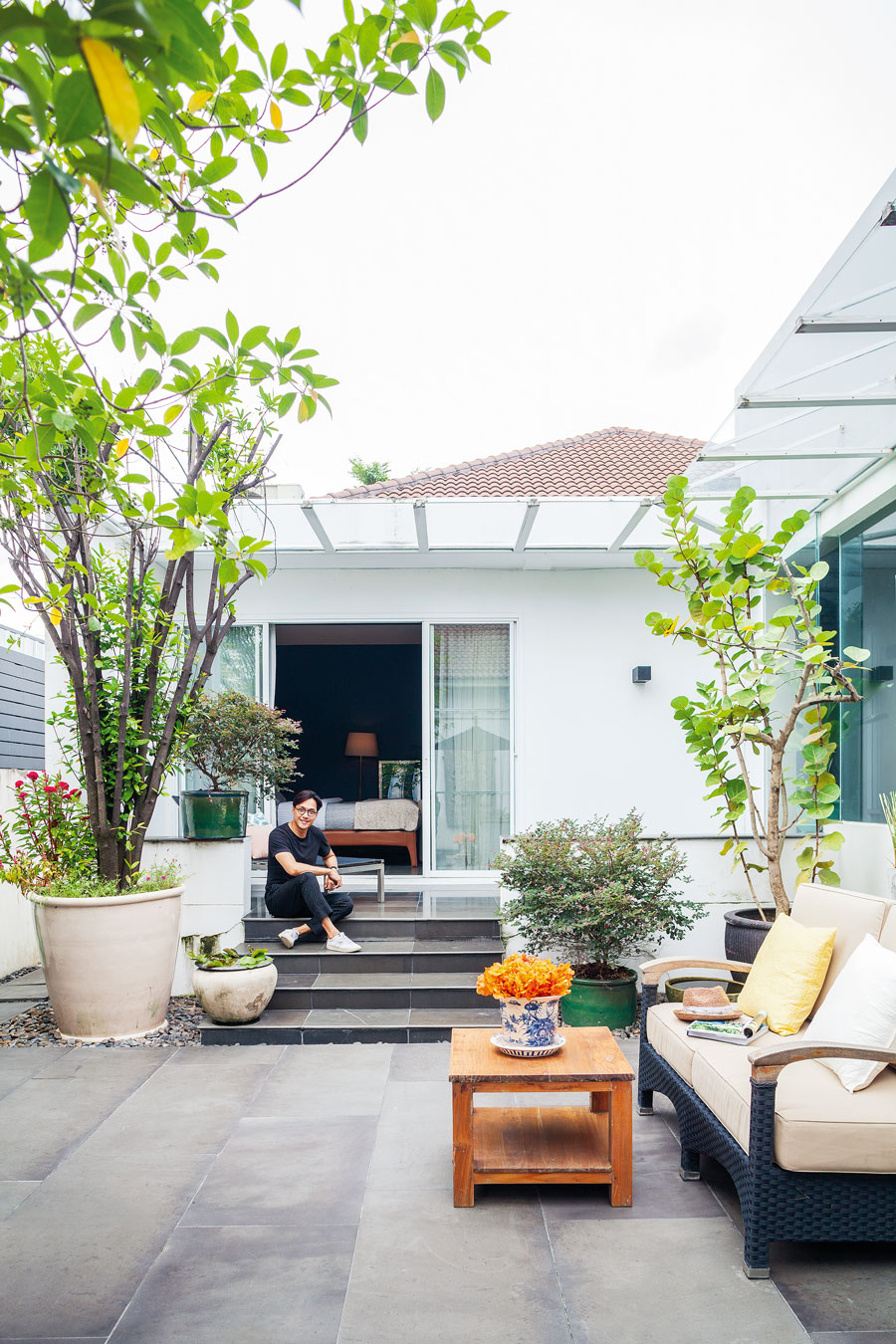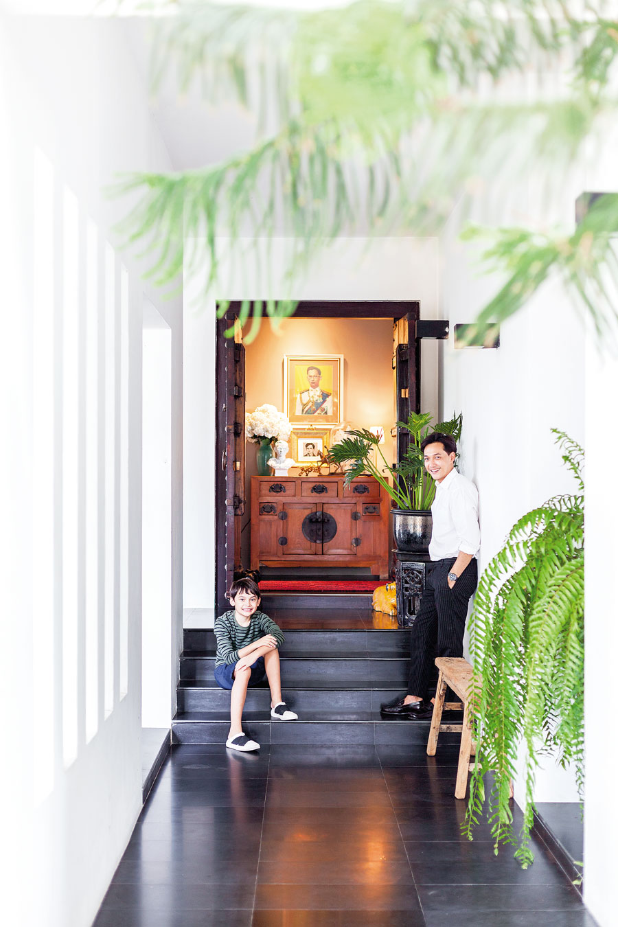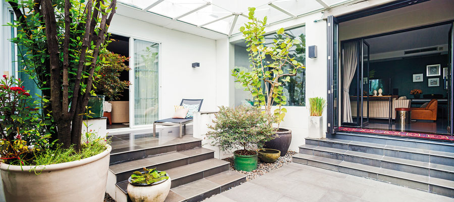 “มีเพื่อนซึ่งก็คือบอย (คุณพีรพล จันทรากาศ) มาซื้อที่ในซอยนี้ เขาขับรถผ่านบ้านนี้บ่อยๆ ก็เลยชวนมาดู พอมาเห็นก็ชอบสเปซของบ้านที่ดูไม่เป็นบ้านโครงการแบบสมัยนี้ที่มีความคล้ายคลึงกันไปหมด อีกอย่างคือผมชอบบ้านชั้นเดียวด้วย ตอนแรกตั้งใจจะรออีกสัก 5 ปี ให้อาร์ตี้โตพอที่จะแยกห้องอยู่คนเดียวได้ แต่มาคิดอีกที คุณแม่ก็อายุมากขึ้น ไม่อยากให้เดินขึ้น-ลงบันไดมากนัก ประจวบกับถูกใจบ้านหลังนี้ด้วย ทุกอย่างก็เลยลงตัว”