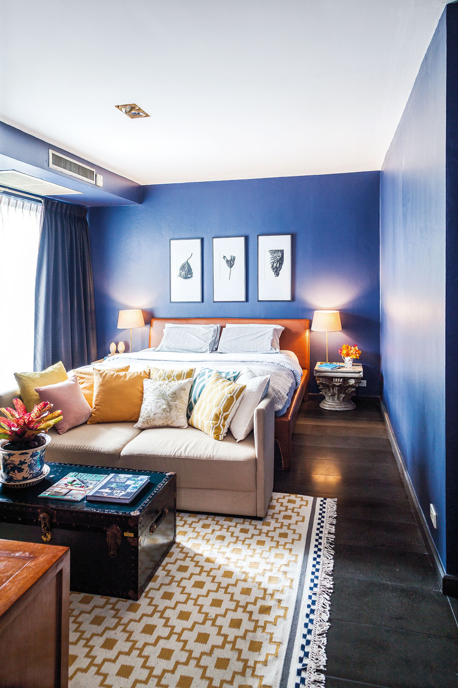 สำหรับการเลือกของตกแต่งและเฟอร์นิเจอร์มีทั้งที่เป็นของเก่าและของใหม่ ซึ่งนำมามิกซ์แอนด์แมตช์ให้เข้ากันได้พอดี ของบางชิ้นยังแฝงกลิ่นอายของวัฒนธรรมตะวันออก ซึ่งช่วยเติมความอบอุ่นให้บ้านได้เป็นอย่างดี นอกจากนี้ยังมีเรื่องการใช้สีที่โดดเด่นไม่แพ้กัน คุณโต้งเล่าให้เราฟังว่า