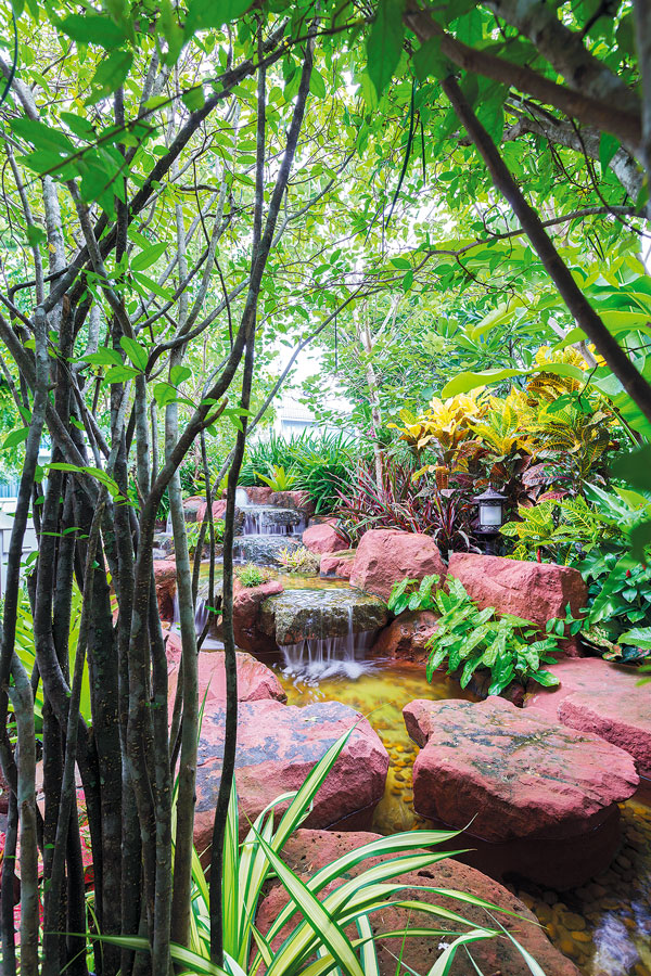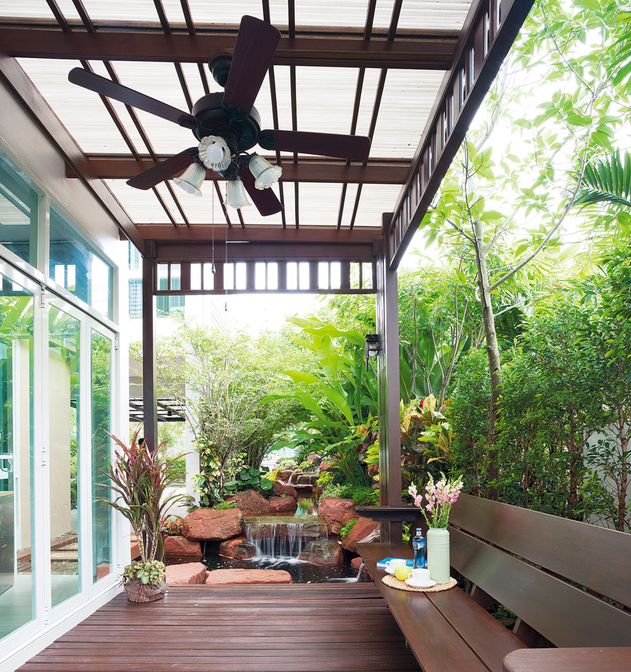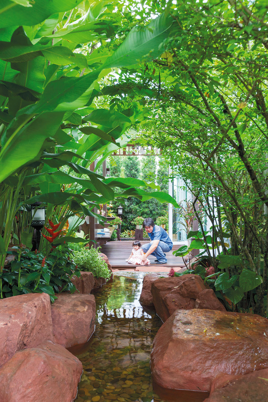 “ผมเบื่อสวนที่เป็นสนามหญ้าโล่งแบบที่โครงการจัดสรรชอบจัดให้ อยากมีสวนที่ตรงตามใจเรา อย่างของผมอยากมีน้ำตกในบ้าน เอาไว้ฟังเสียงน้ำและเป็นพื้นที่นั่งเล่นพักผ่อนในยามว่าง ส่วนภรรยาชอบสวนสไตล์อังกฤษหวานๆ ก็เป็นอีกอารมณ์หนึ่ง แต่ก็ถูกใจเราทั้งสองคน รู้สึกมีความสุขเหมือนได้พักผ่อนทุกวัน” คุณธีรชาติกล่าวทิ้งท้ายด้วยรอยยิ้ม